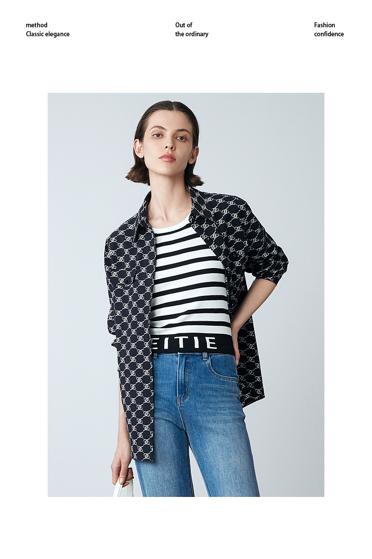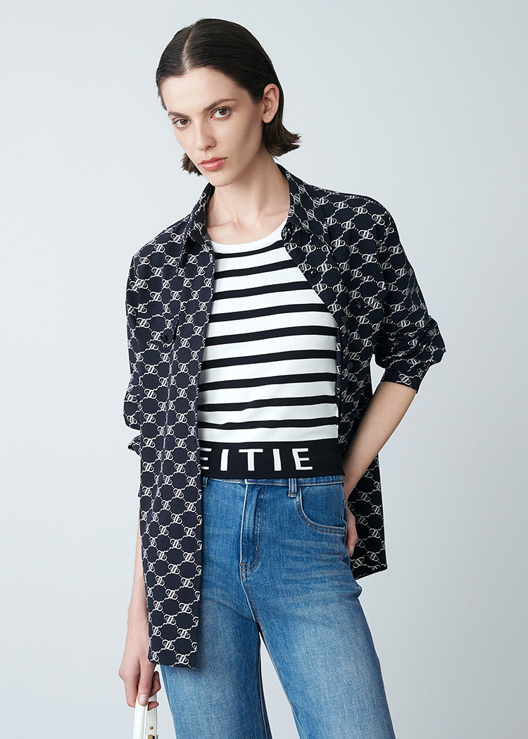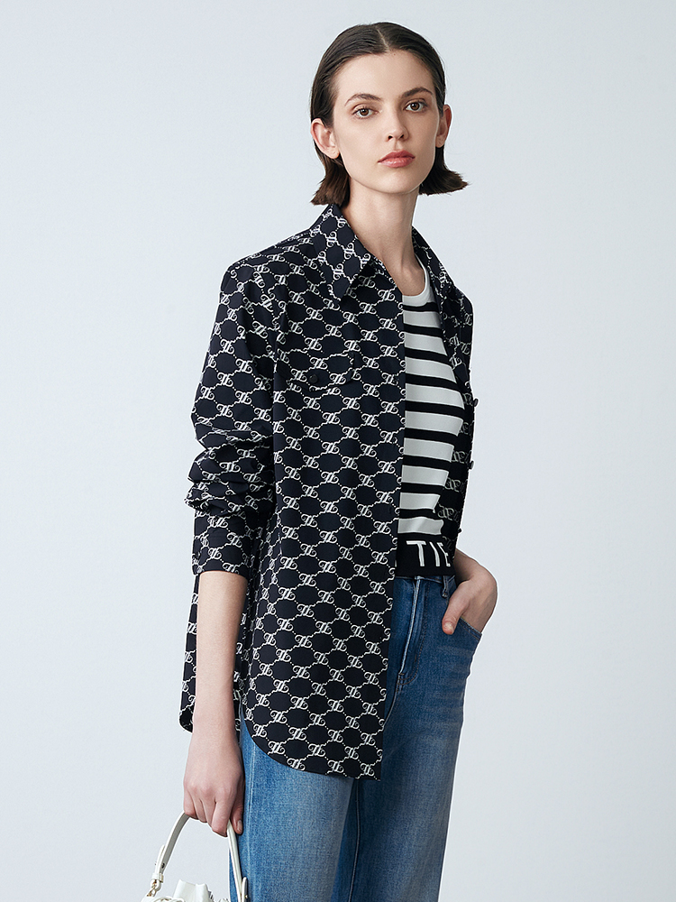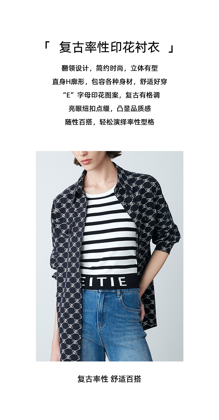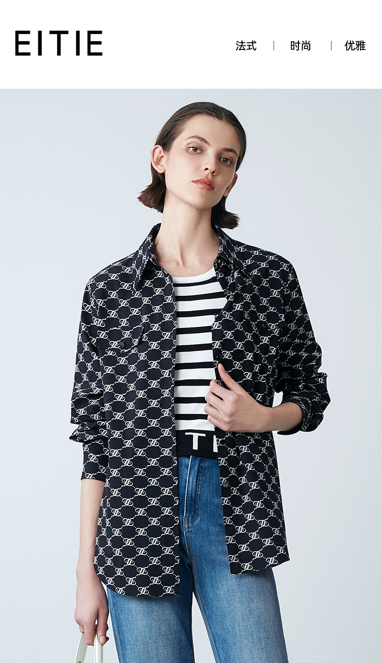 EITIE爱特爱春季新款时尚复古通勤百搭显瘦印花衬衫7709404