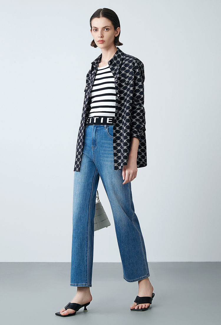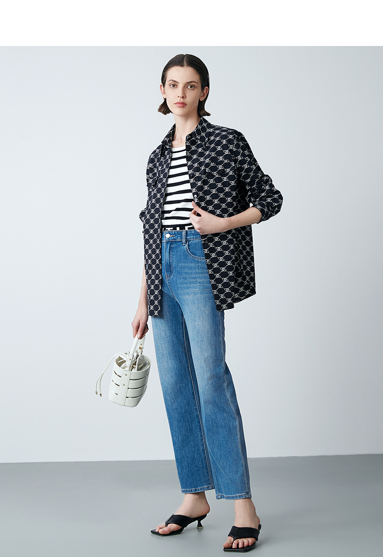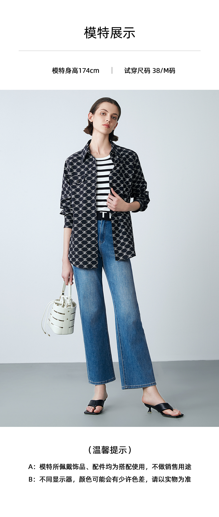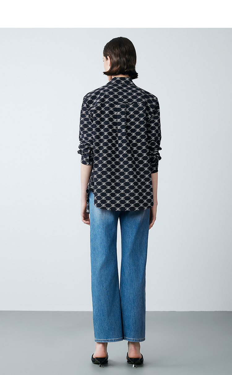EITIE爱特爱春季新款时尚复古通勤百搭显瘦印花衬衫7709404