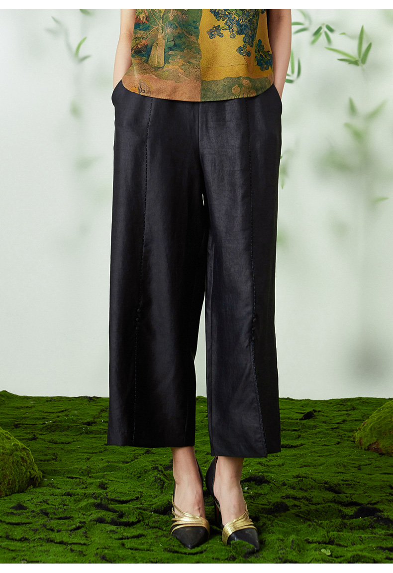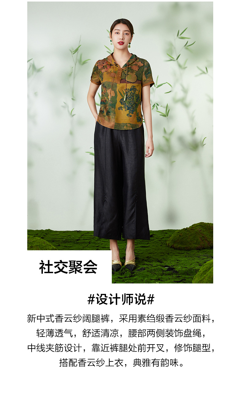 【曜石黑】【香云纱】乔万尼重磅真丝阔腿裤复古中式气质设计EM2F838