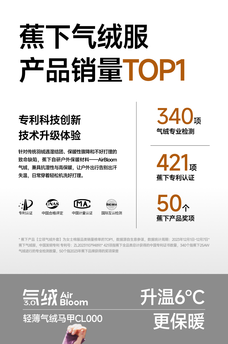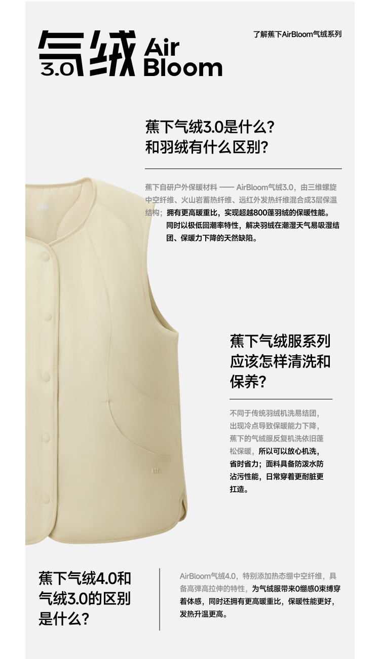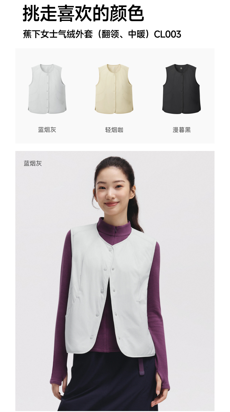 【蕉下精选】蕉下女士气绒马甲(圆领、中暖)CL00025