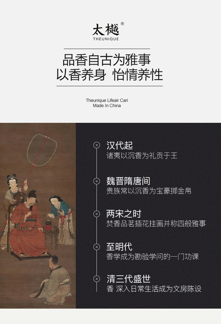 太樾-THEUNIQUE,天然植物香薰专业品牌。长期以来,太樾一直专注于沉香等名贵植物香料的应用价值研究开发,通过传统香文化与现代生物科技相结合,为人们提供健康而又美妙的熏香体验。