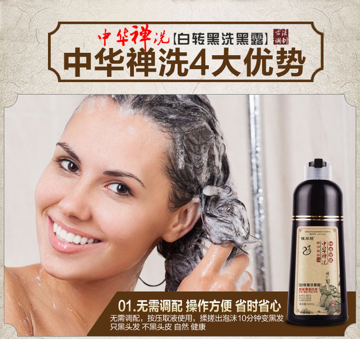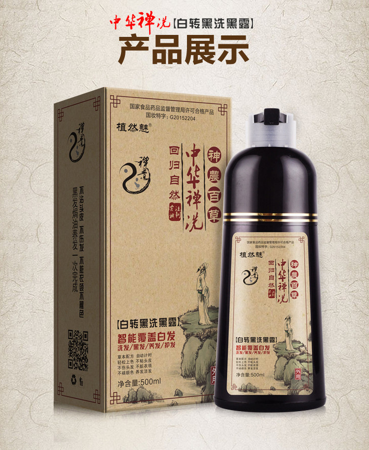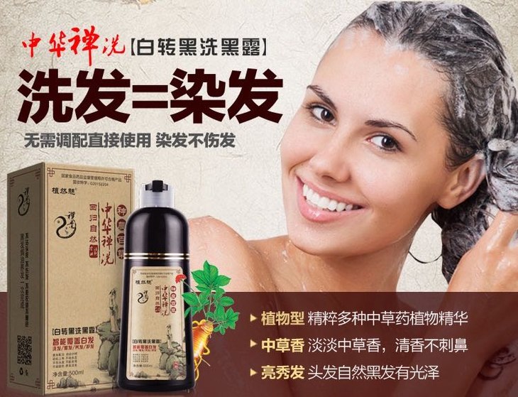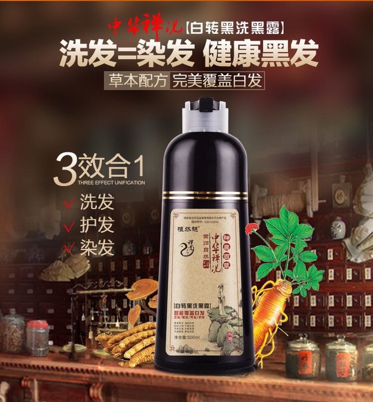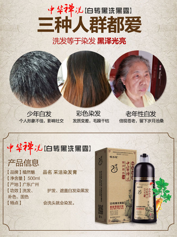 【中华禅洗】植然魅洗发水一洗黑染发剂纯植物不沾头皮
