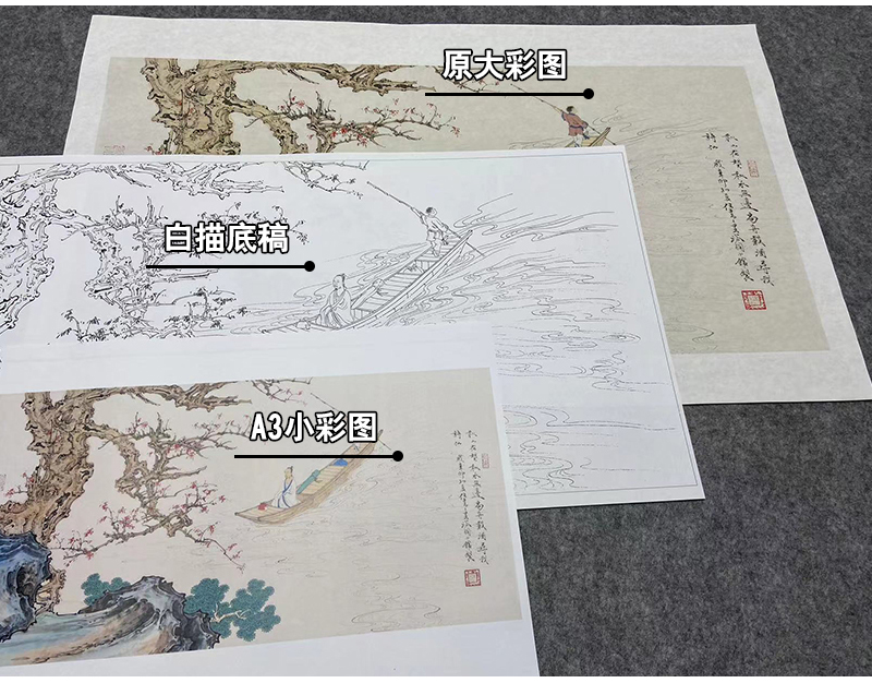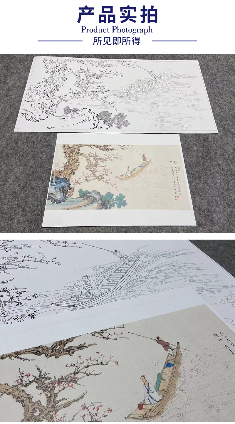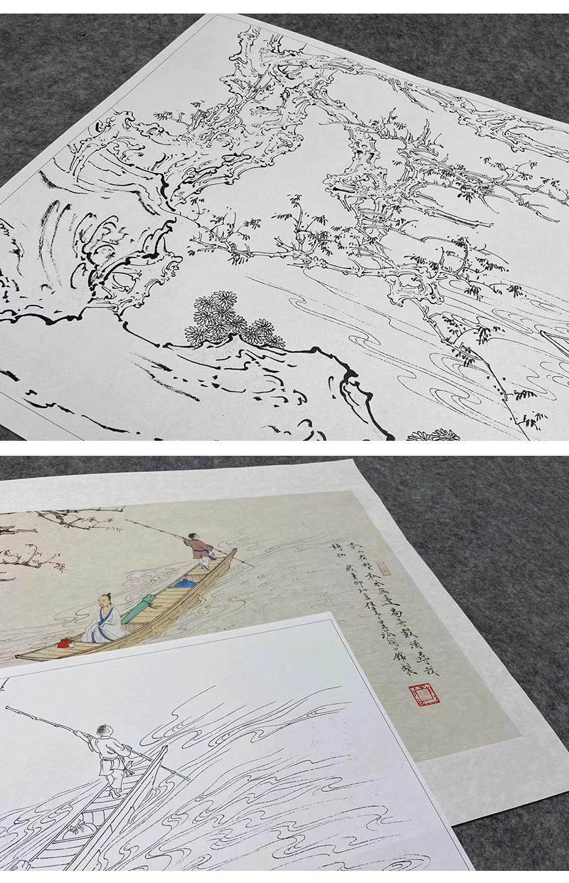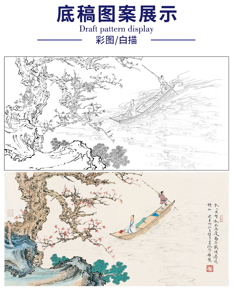 任重工笔画白描底稿小舟《秋水泛舟 》临摹勾线高清打印稿YL23