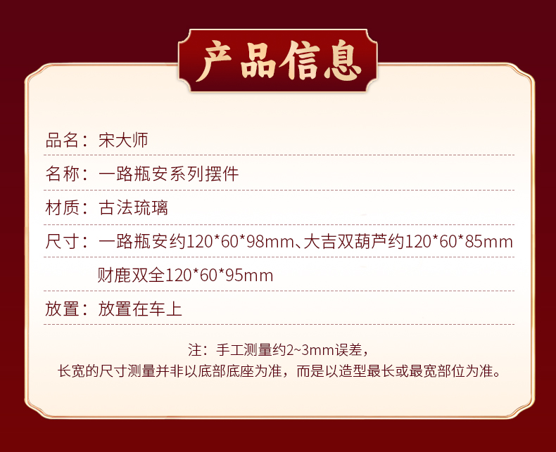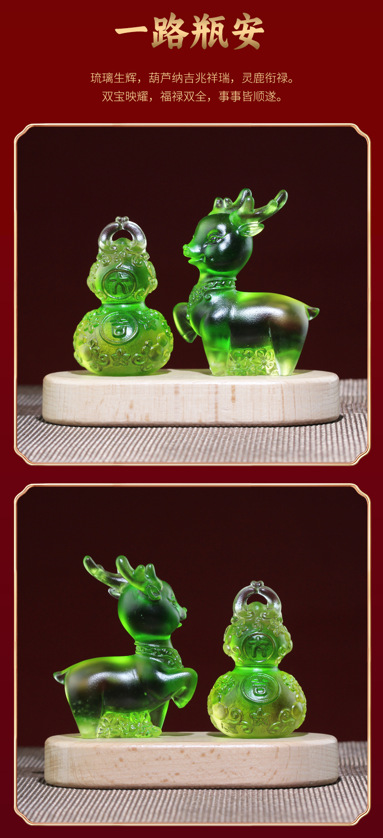 宋韶光集雅轩2026马年一路瓶安 葫芦财鹿 古法琉璃车摆件桌面摆件