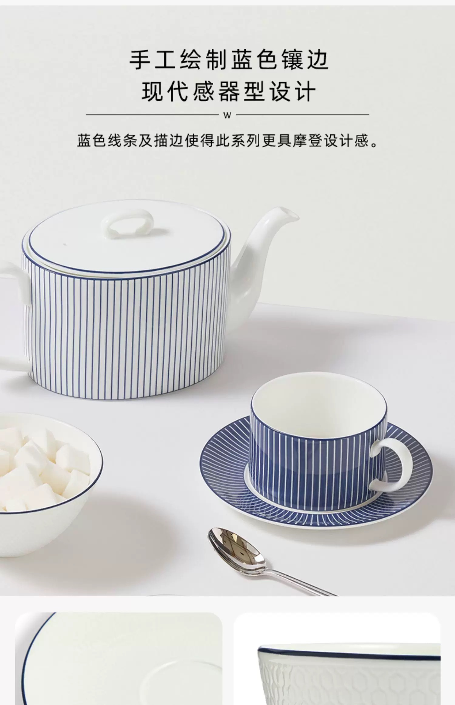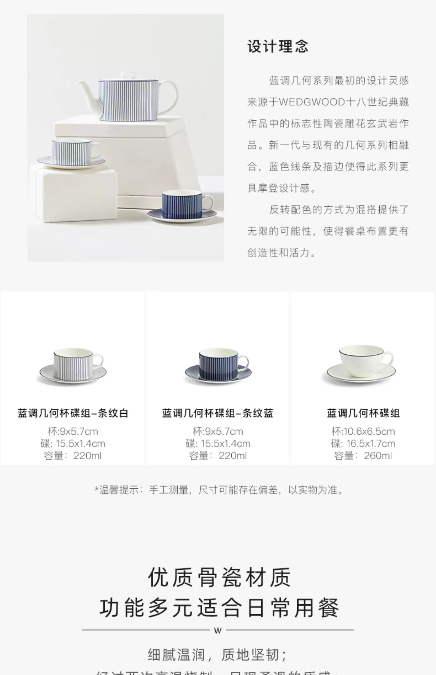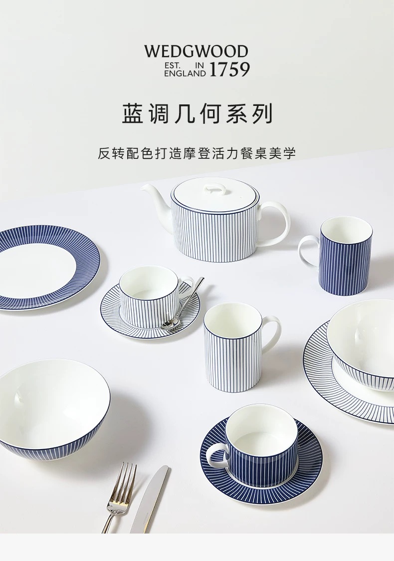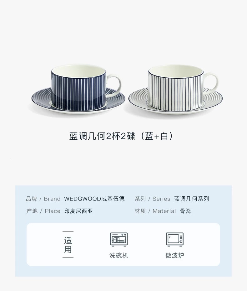 【WEDGWOOD】威基伍德 GIO BLUE蓝调几何杯碟骨瓷下午茶咖啡杯