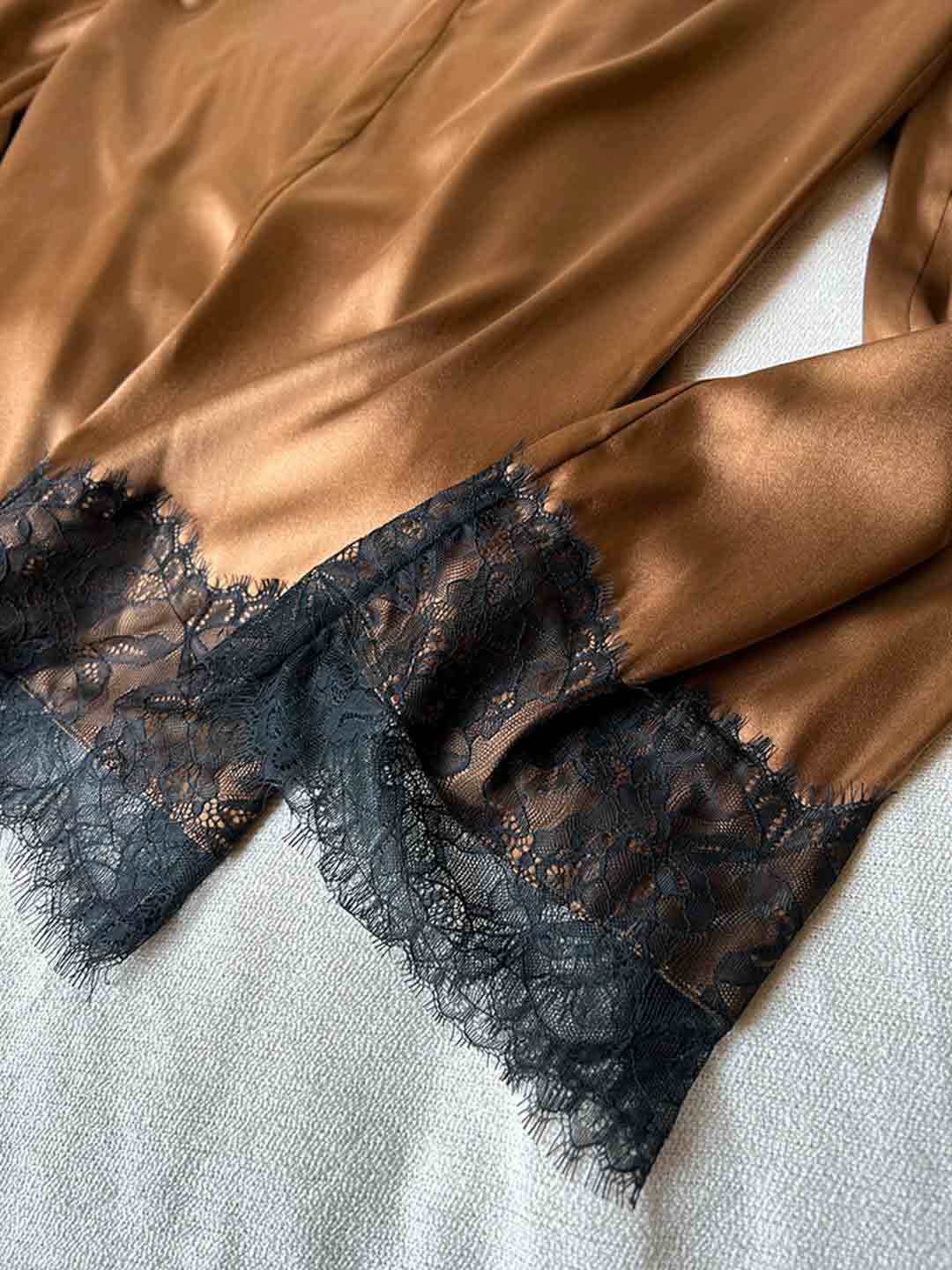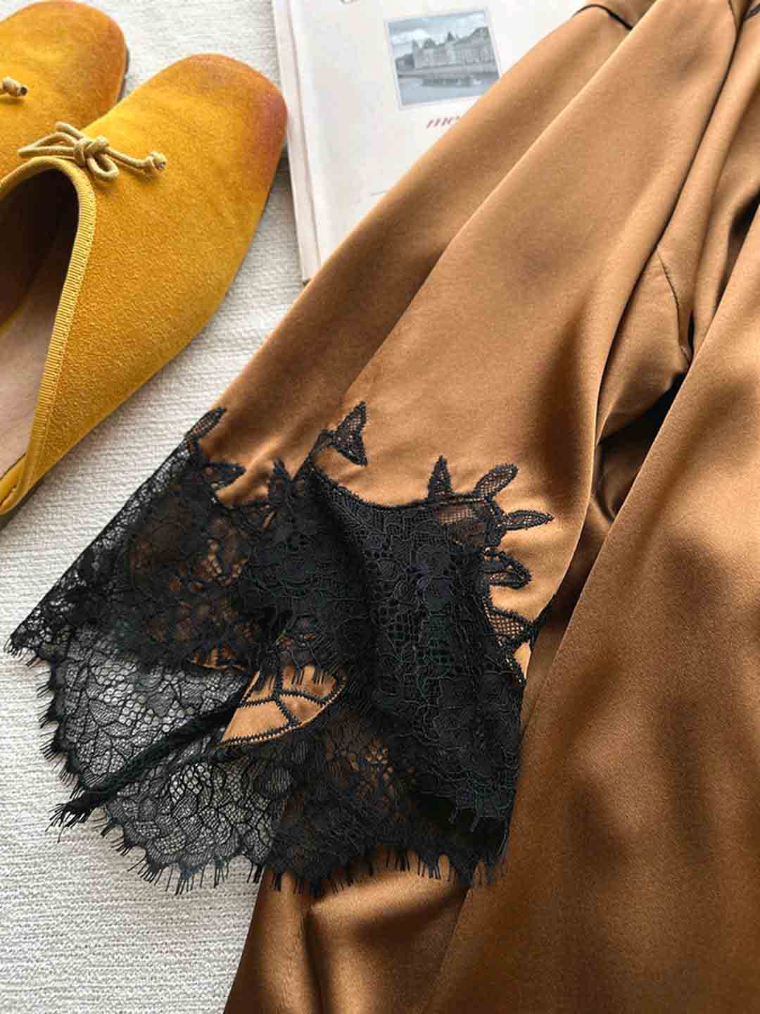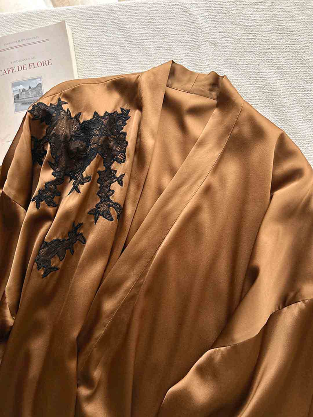 双层手工蕾丝真丝外披睡袍,双层设计,用料更是讲究大方