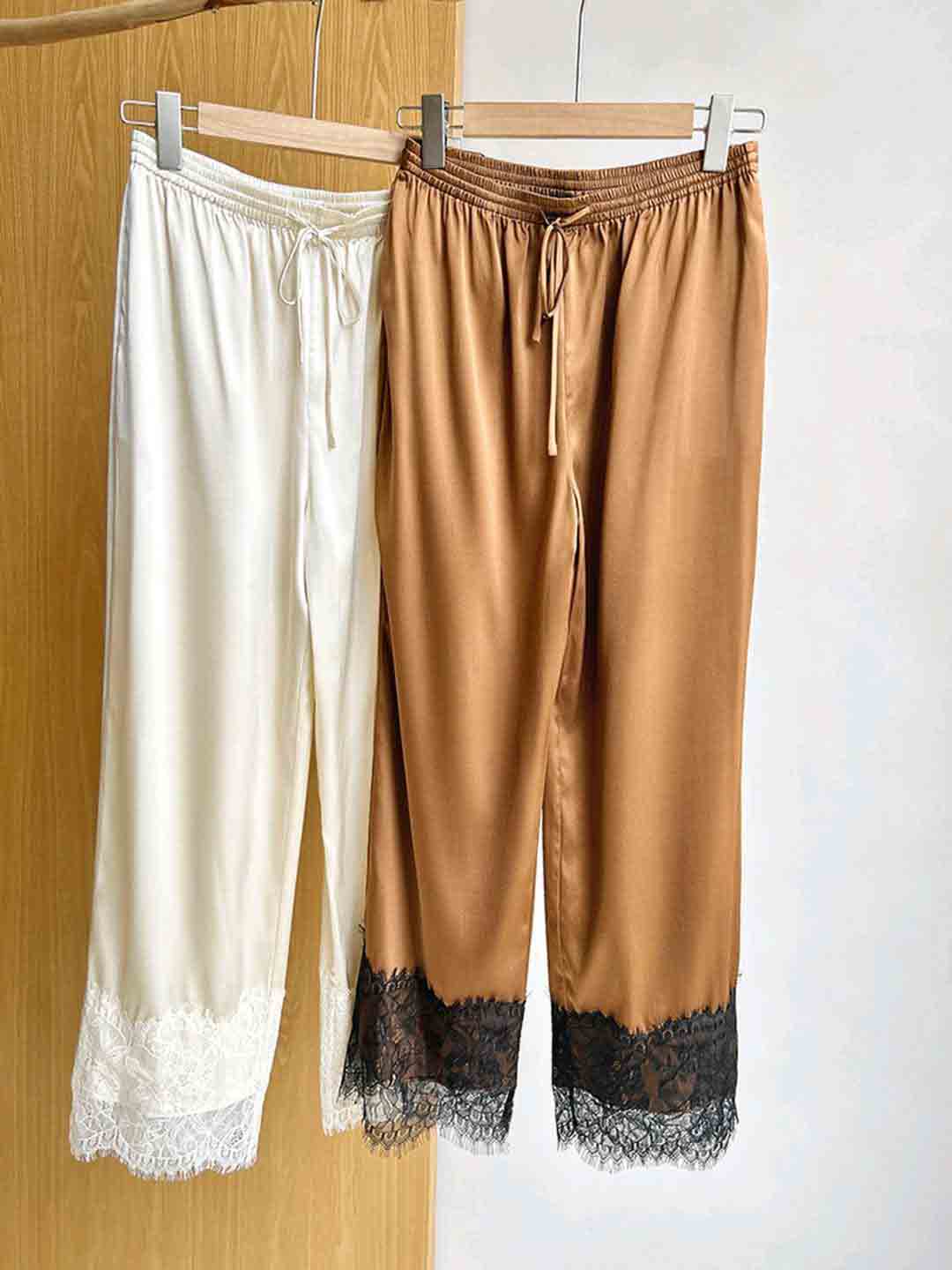 裤脚拼蕾丝边,舒适优雅中带有小性感的LOOK~
