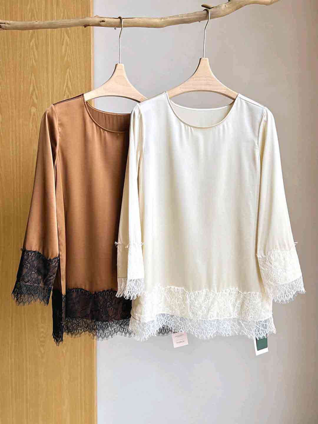 圆领下摆拼蕾丝边,经典的圆领设计,适合各种脸型