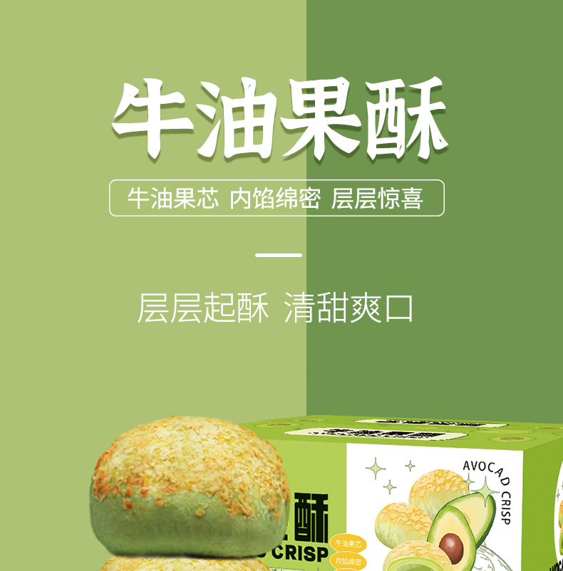 买2送1【代餐新选择】流心牛油果酥蛋黄酥 网红零食糕点 早餐点心中式代餐饱腹300g/盒 好吃美味营养无负担 早餐下午茶必备网红零食-QQ