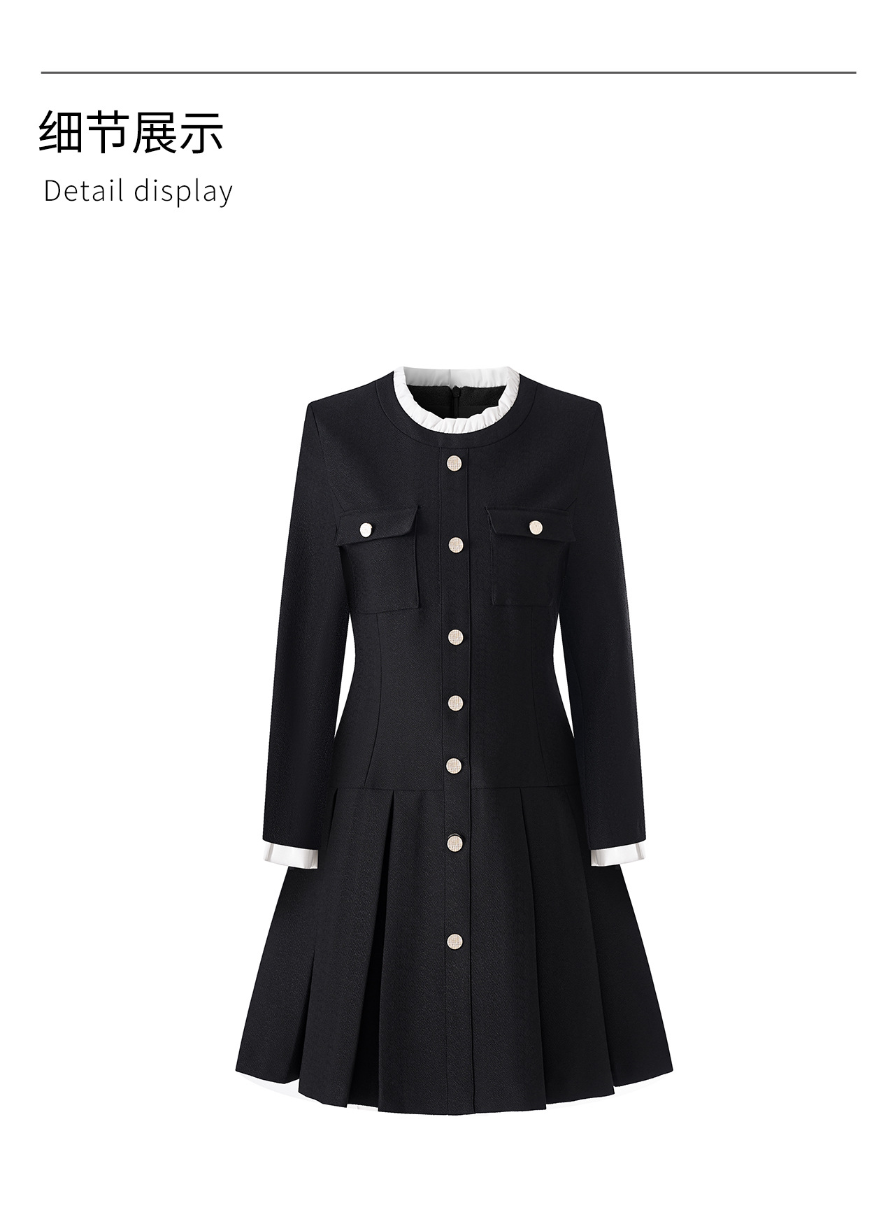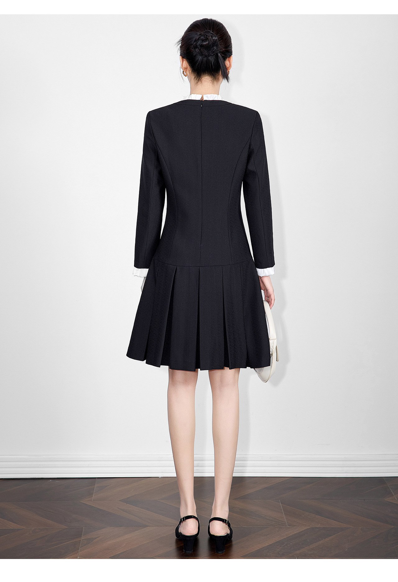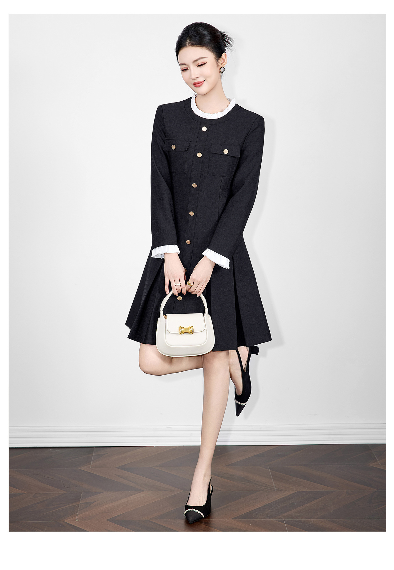 「高货wl」全新升级【铂金会员358/天猫479/差价121】(04102)洛诗琳小香风木耳花边连衣裙2025秋冬法式气质通勤百褶裙