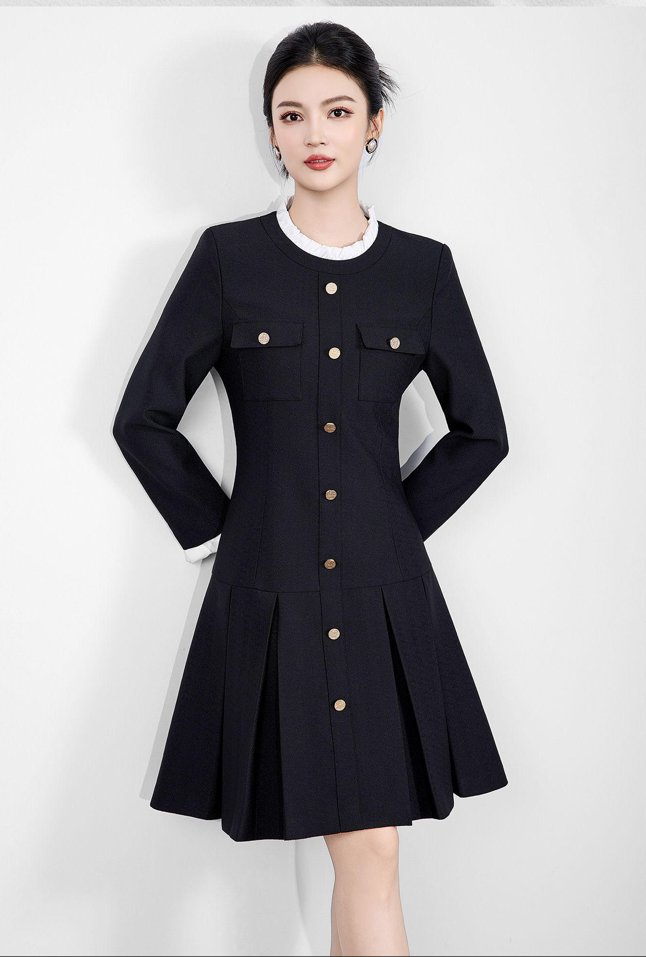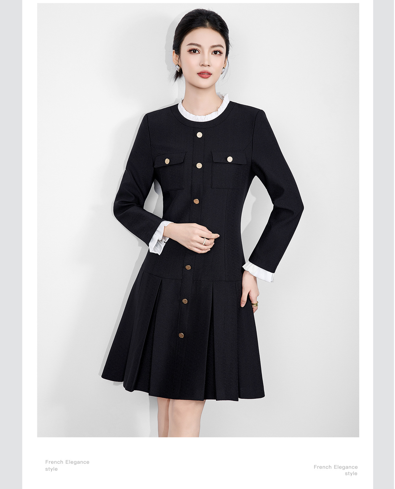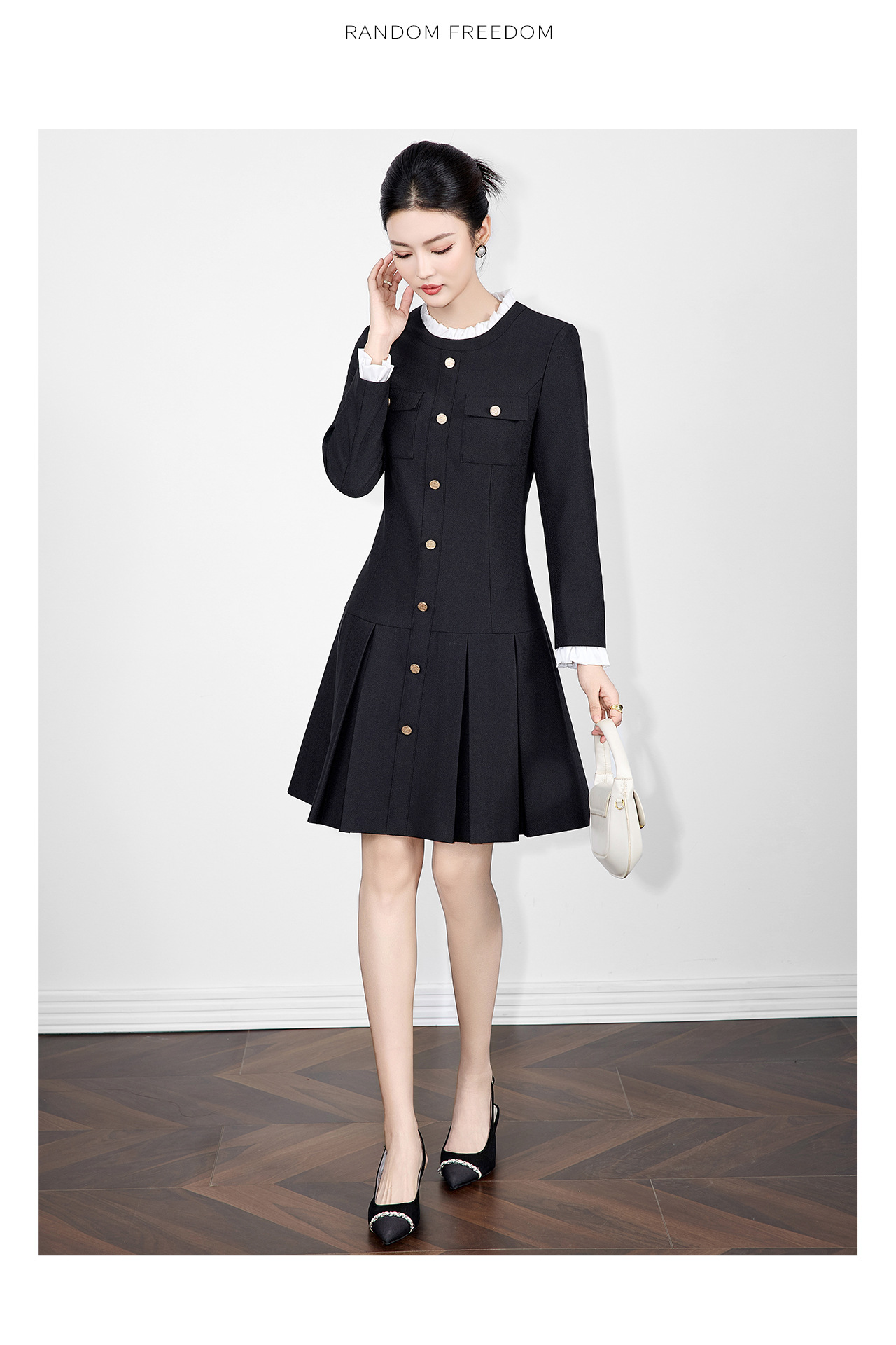 「高货wl」全新升级【铂金会员358/天猫479/差价121】(04102)洛诗琳小香风木耳花边连衣裙2025秋冬法式气质通勤百褶裙