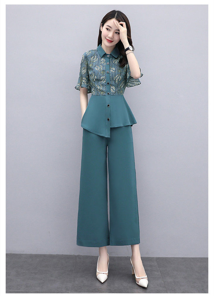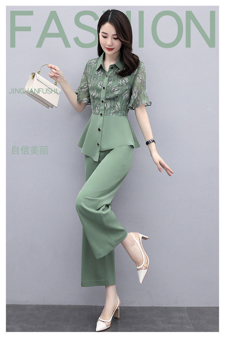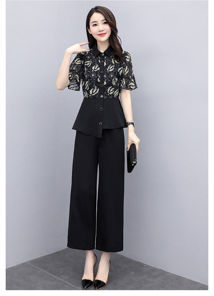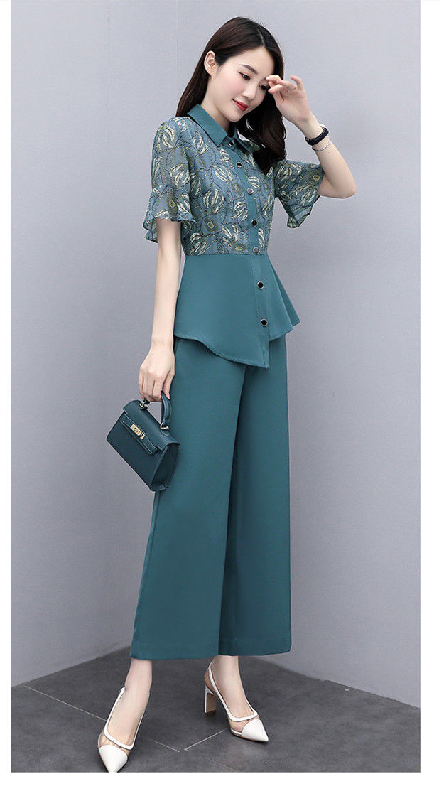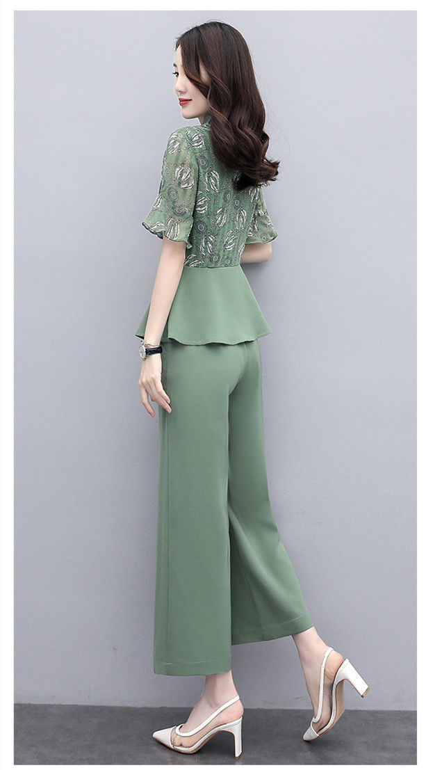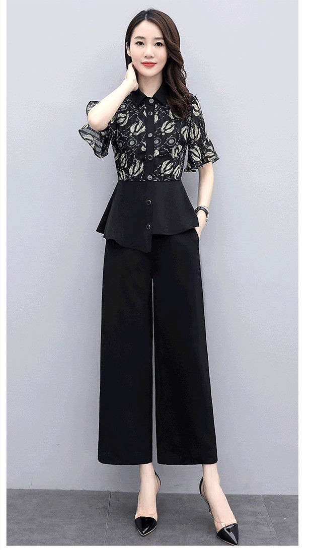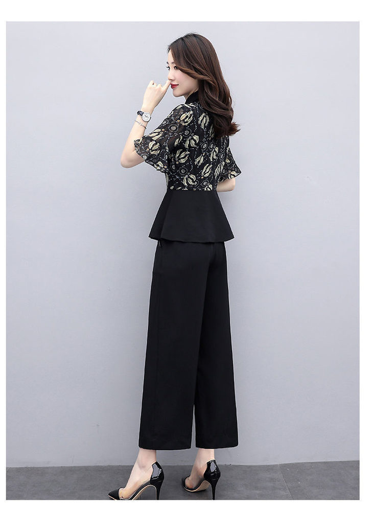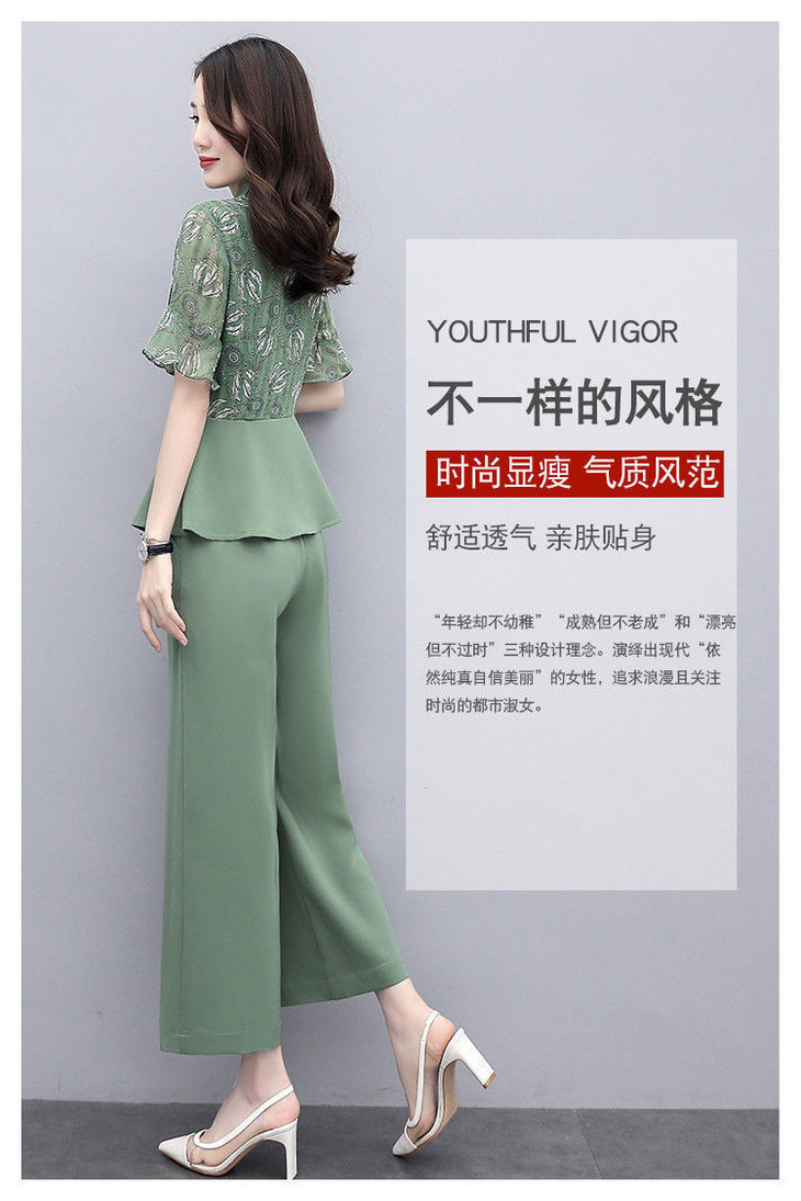TZW-新款夏季气质显瘦女士夏装时尚阔腿裤两件套
