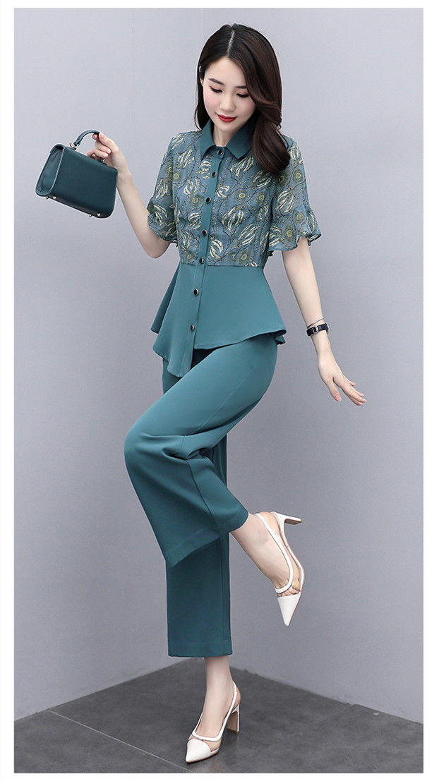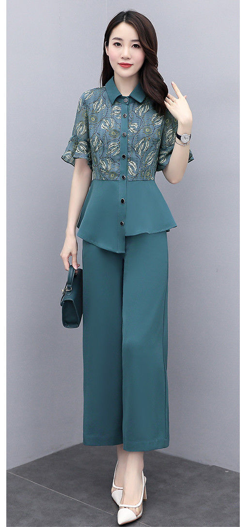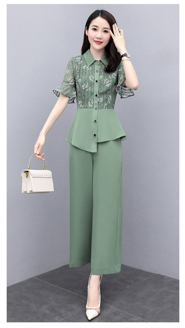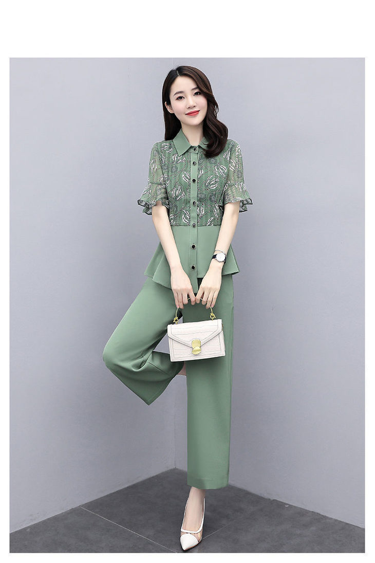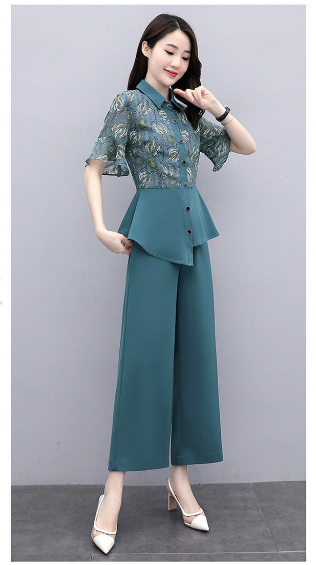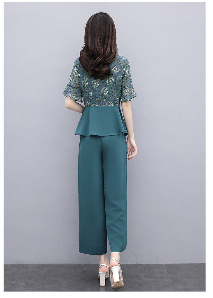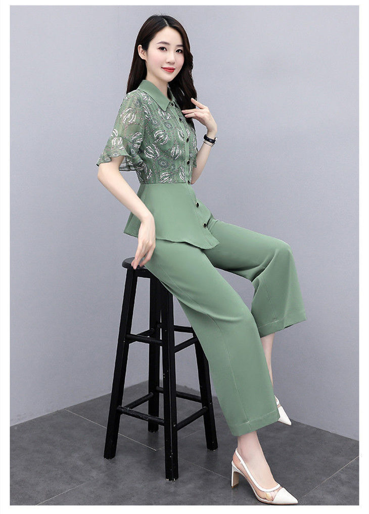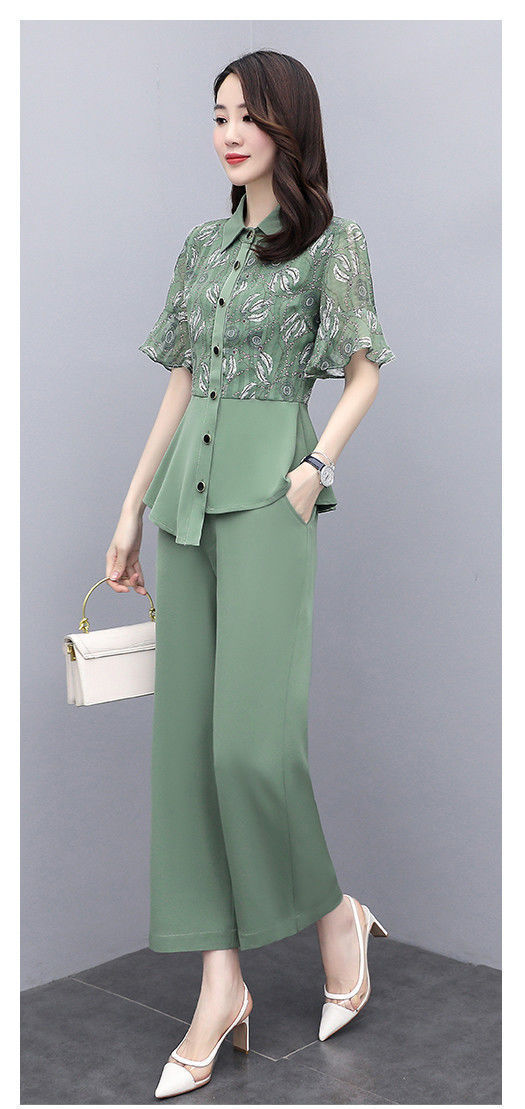 TZW-新款夏季气质显瘦女士夏装时尚阔腿裤两件套