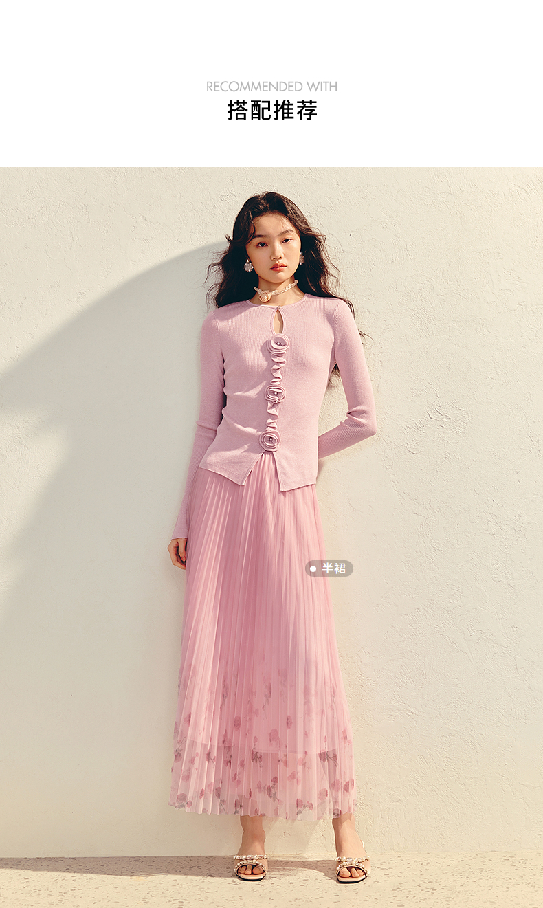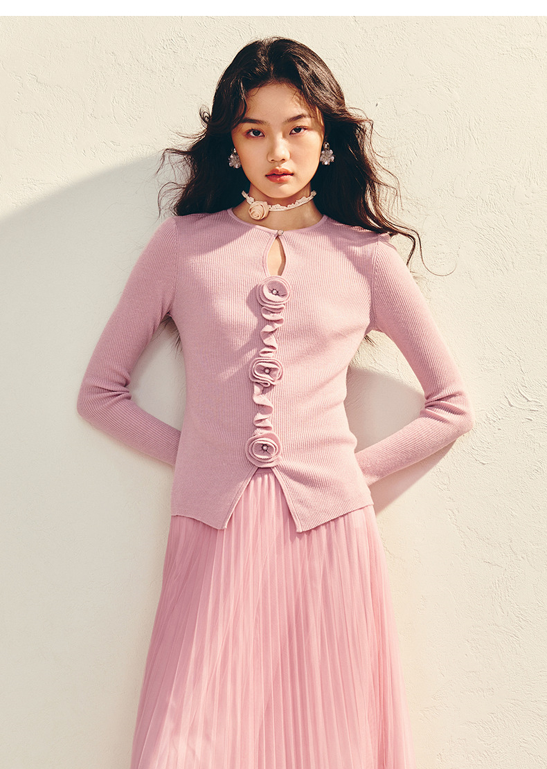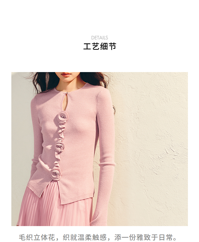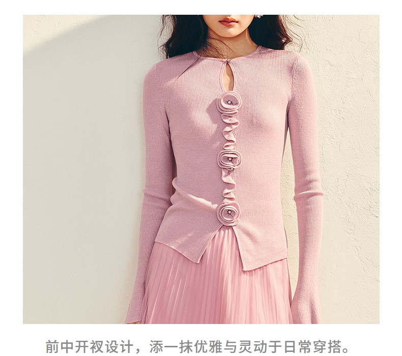 MAXRIENY【商场同款】浪漫优雅感立体花套头毛衫羊毛混纺针织上衣(货号:MU86SW003)