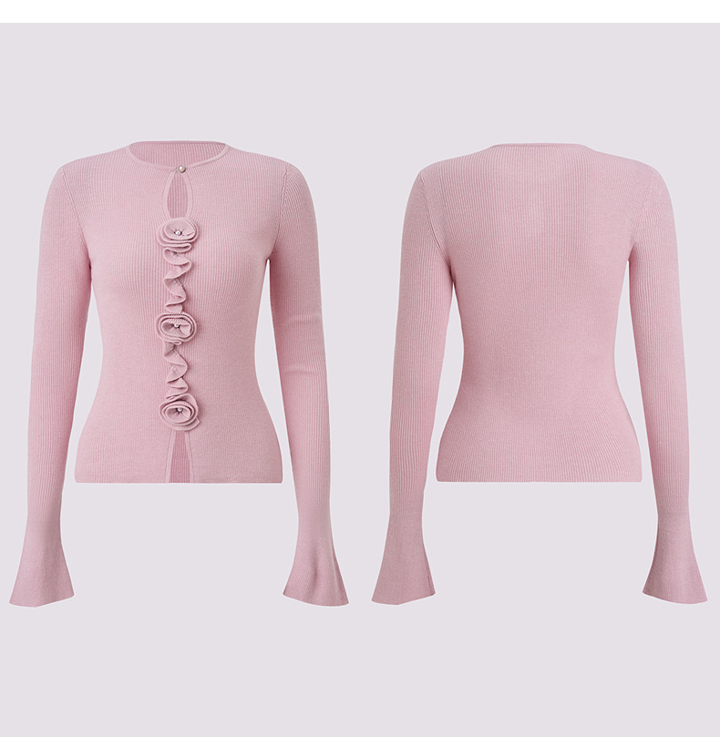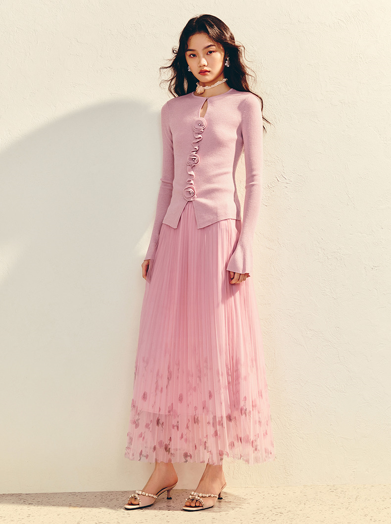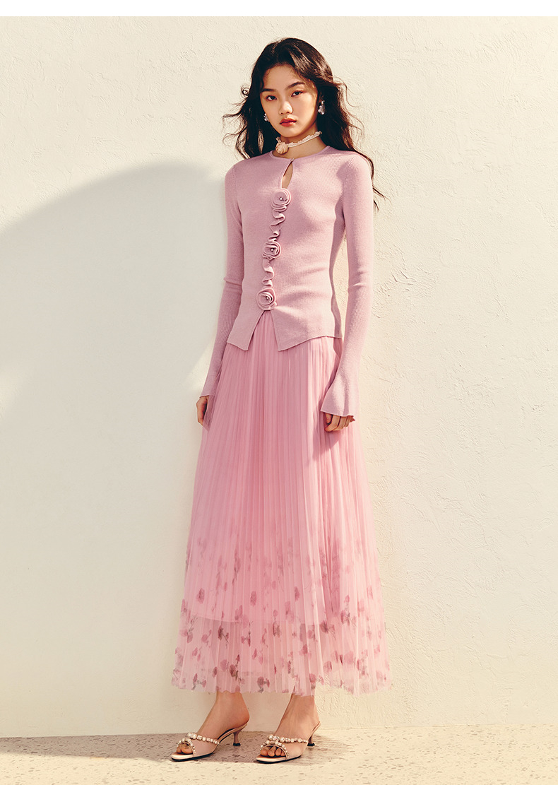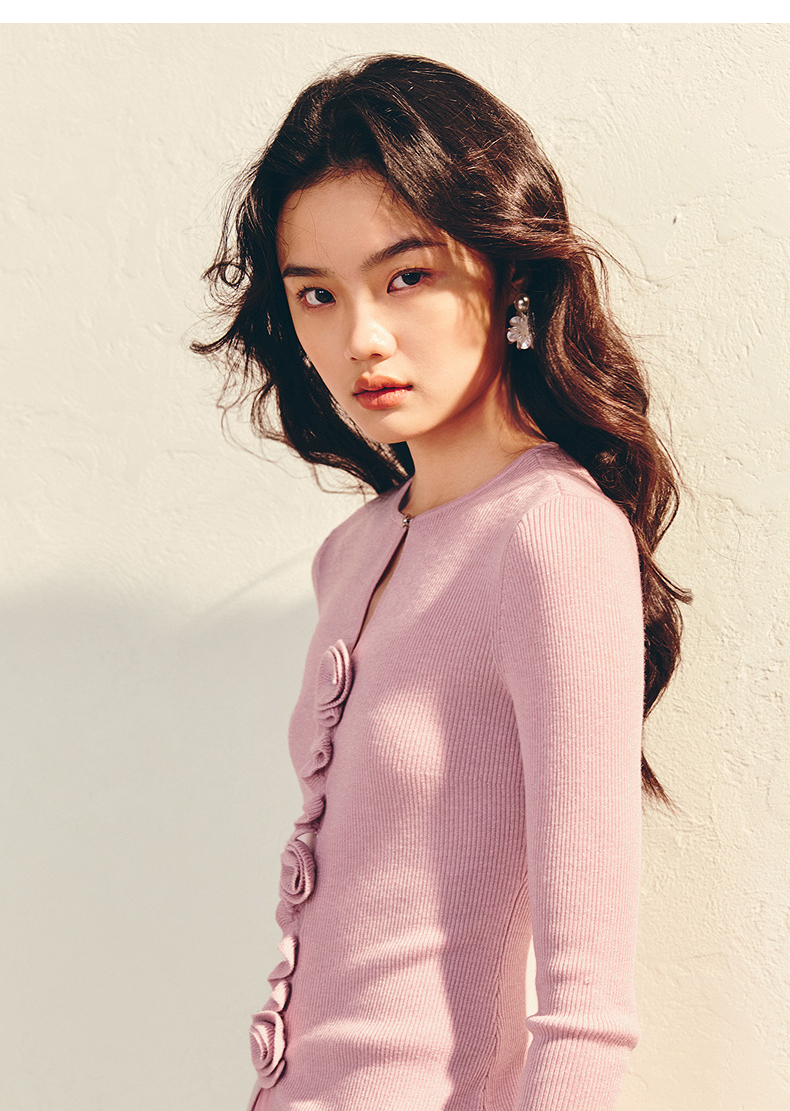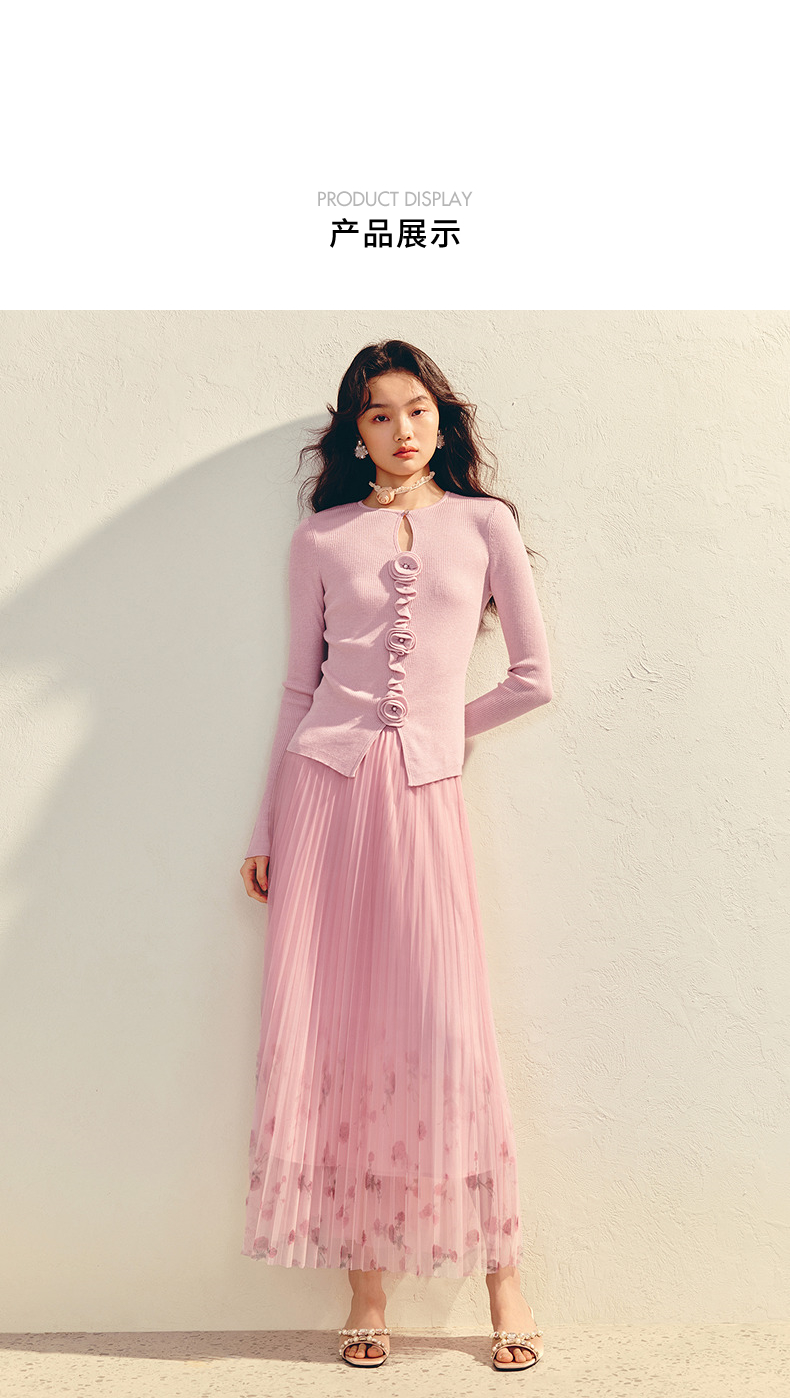 MAXRIENY【商场同款】浪漫优雅感立体花套头毛衫羊毛混纺针织上衣(货号:MU86SW003)