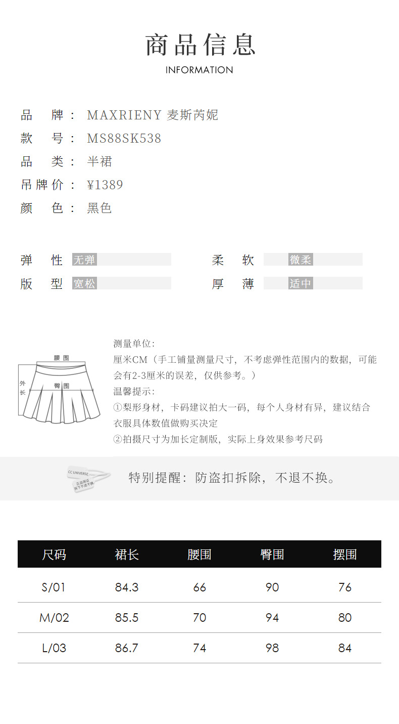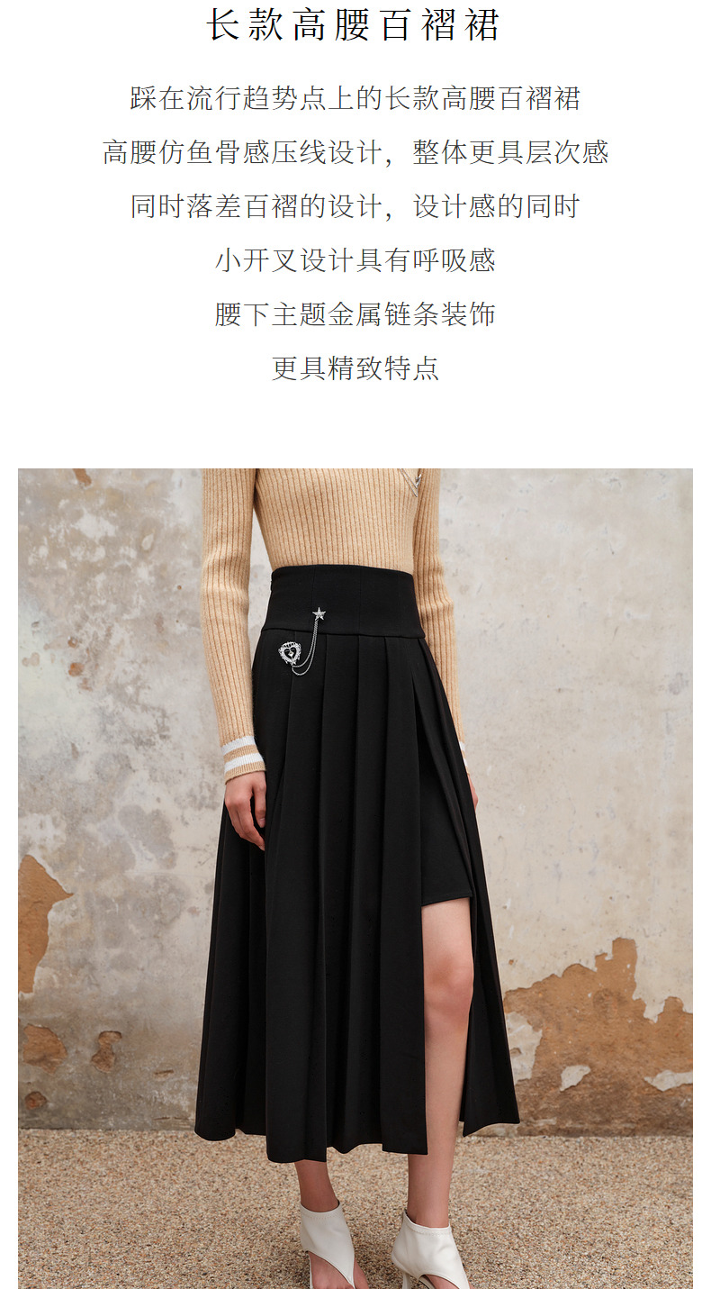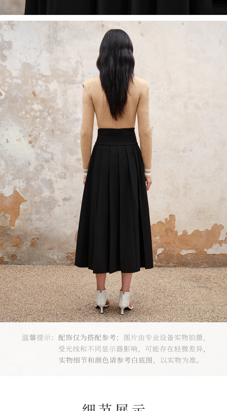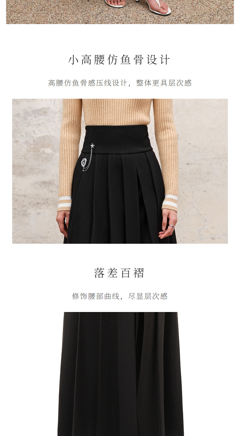 MAXRIENY精致复古氛围感高腰百褶半裙秋冬裙子小众设计感(货号:MS88SK538)