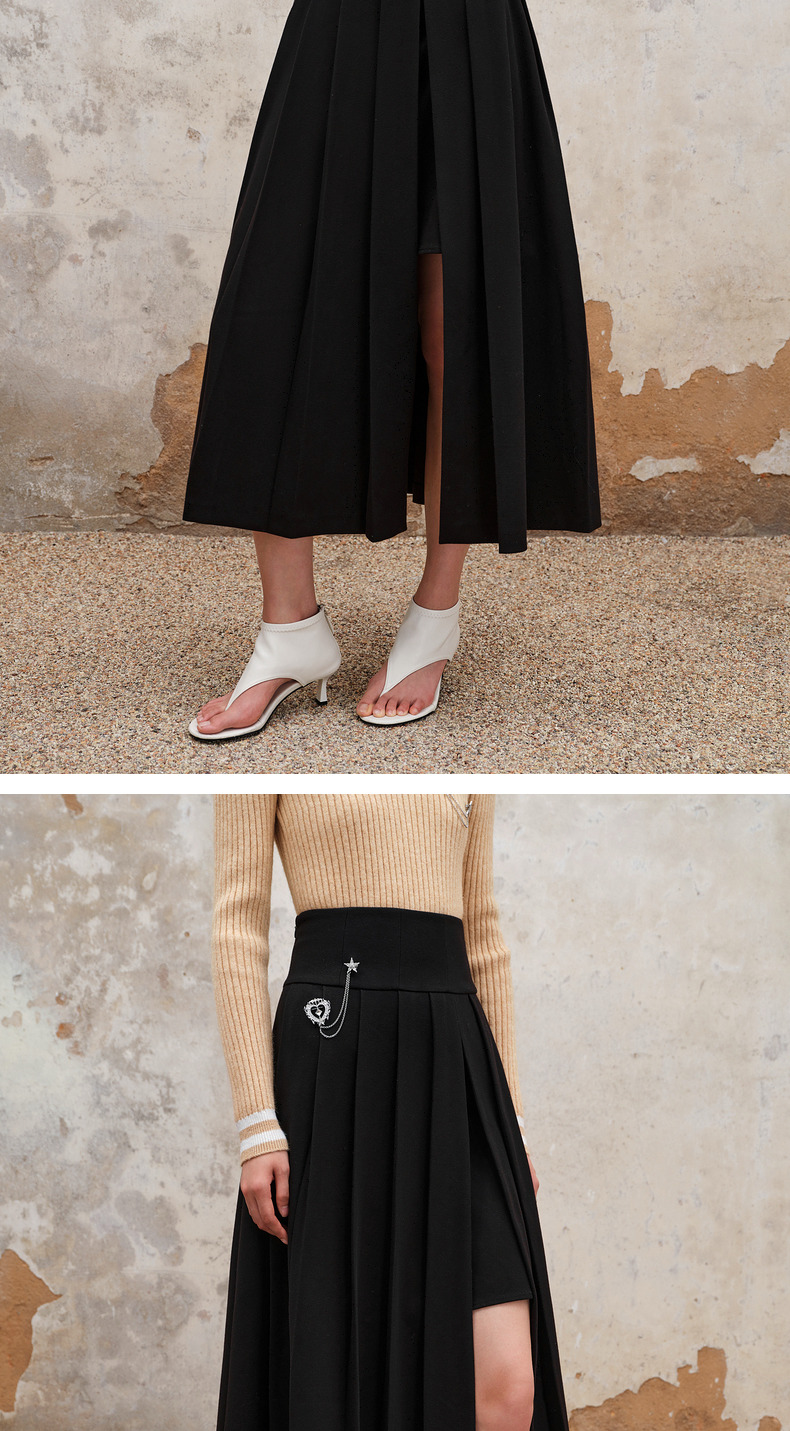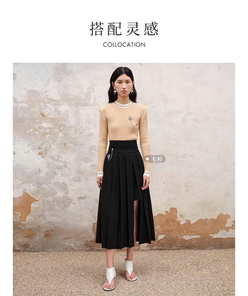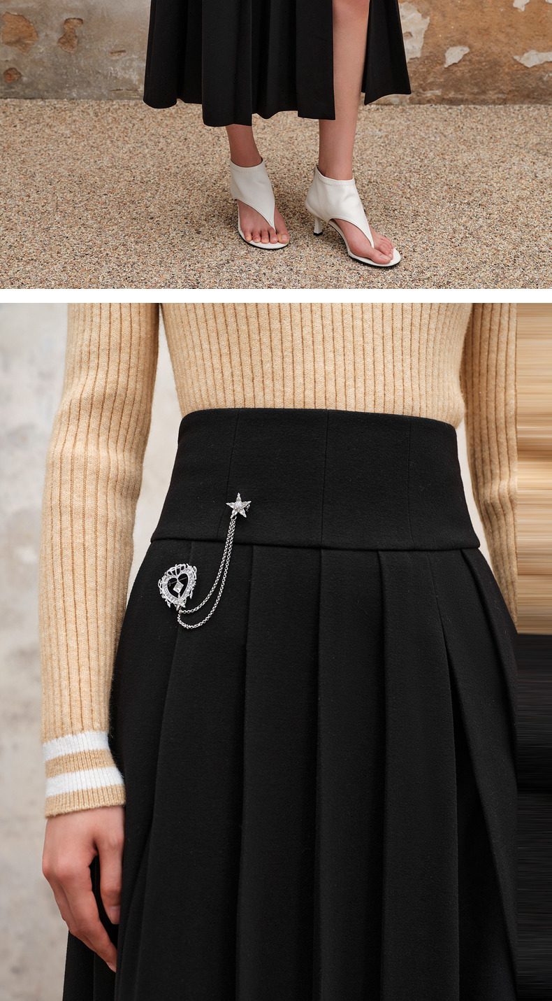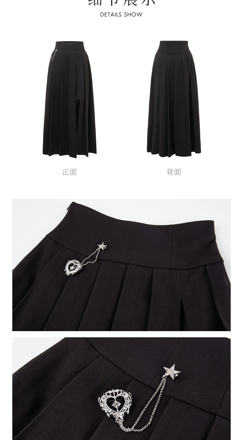 MAXRIENY精致复古氛围感高腰百褶半裙秋冬裙子小众设计感(货号:MS88SK538)