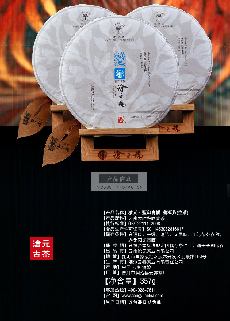 - 以茶立业,以诚为商!以茶正道,以信为本!“沧元号”承袭百年制茶工艺,配方独到,产品具有鲜明特色。沧元品质:做好茶、良心茶、放心茶。