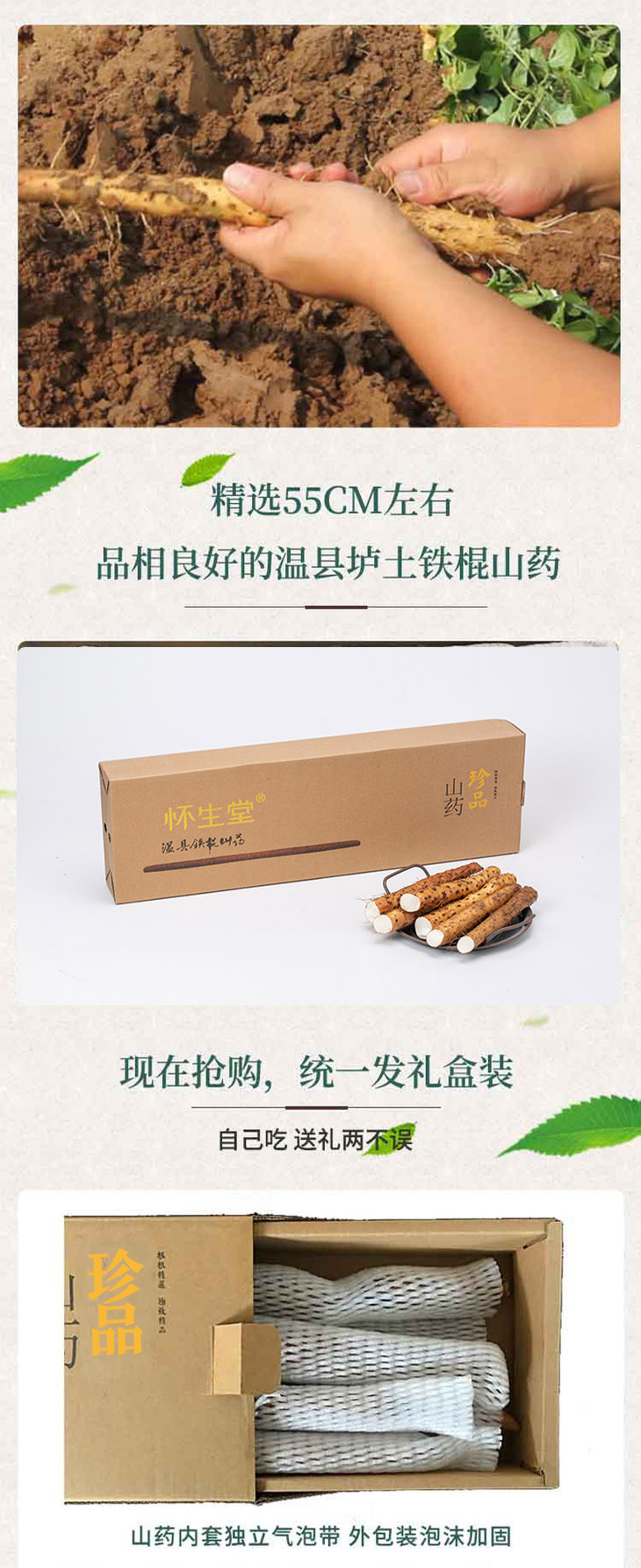怀生堂温县垆土鲜铁棍山药60CM五斤装 1盒