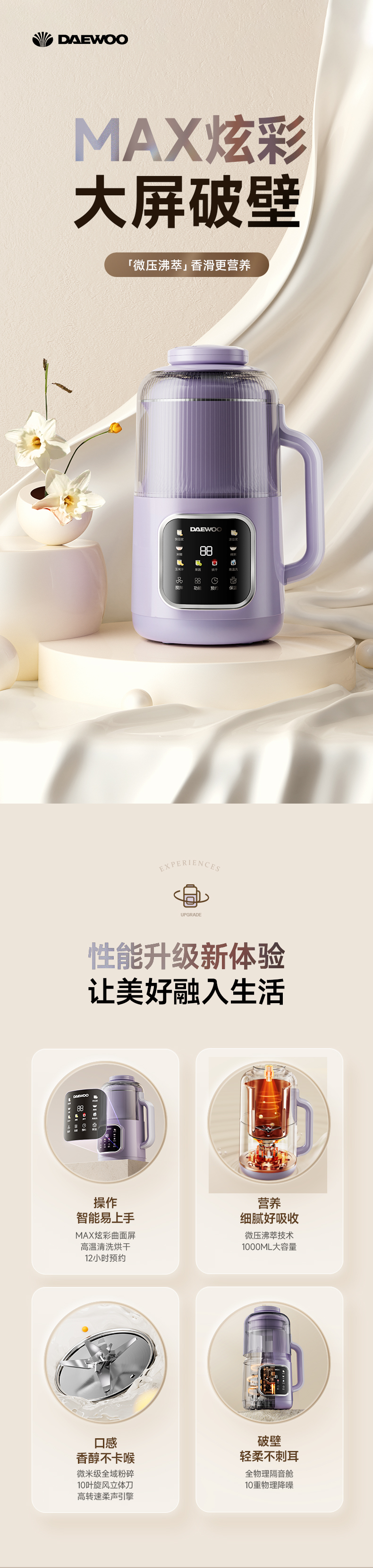 大宇破壁豆浆机家用大容量无渣感全自动迷你小型非低噪音2025新款