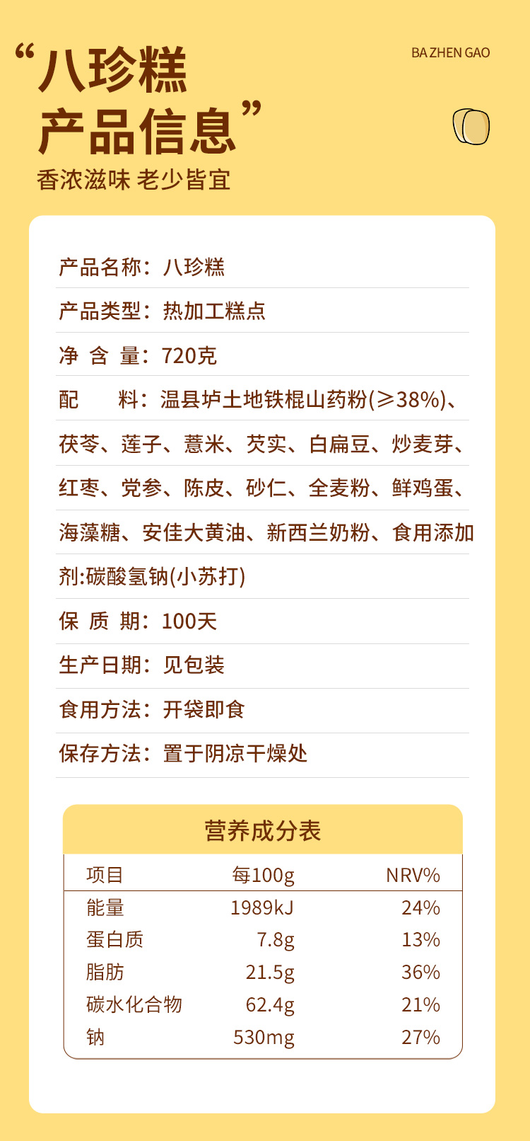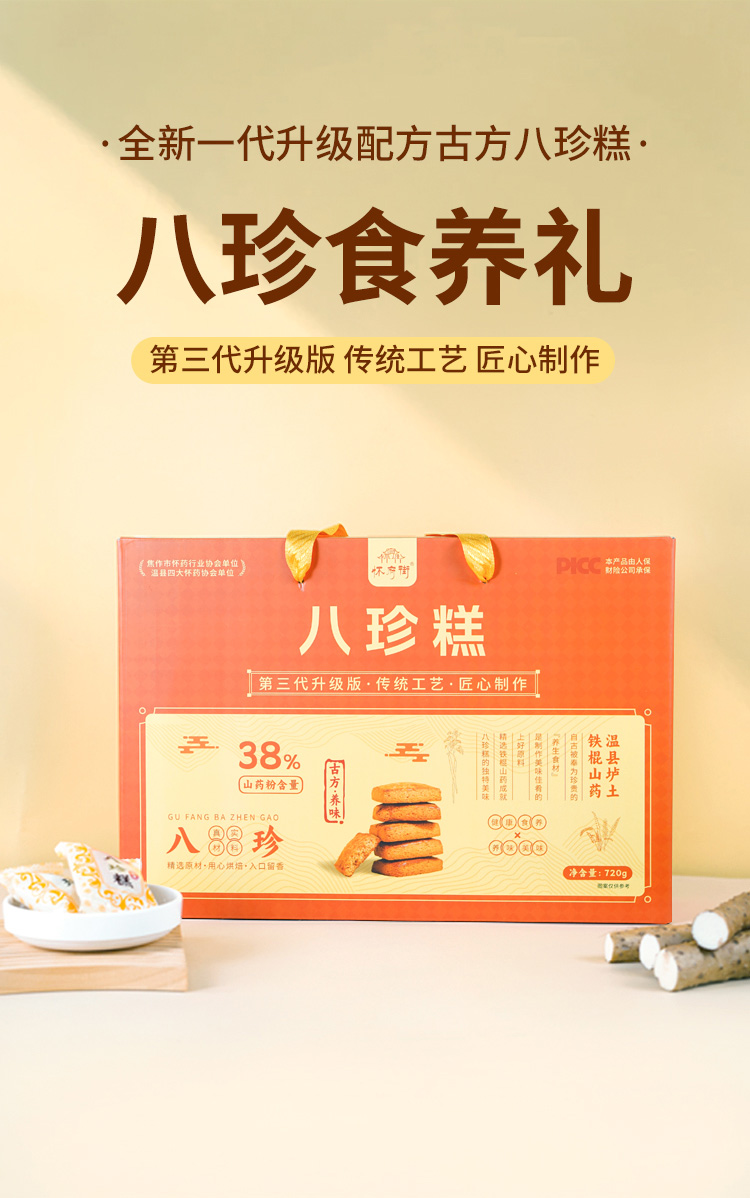怀府街|新一代古方八珍糕礼盒包装 手工制作 0蔗糖 开袋即食 健康零食720g/箱