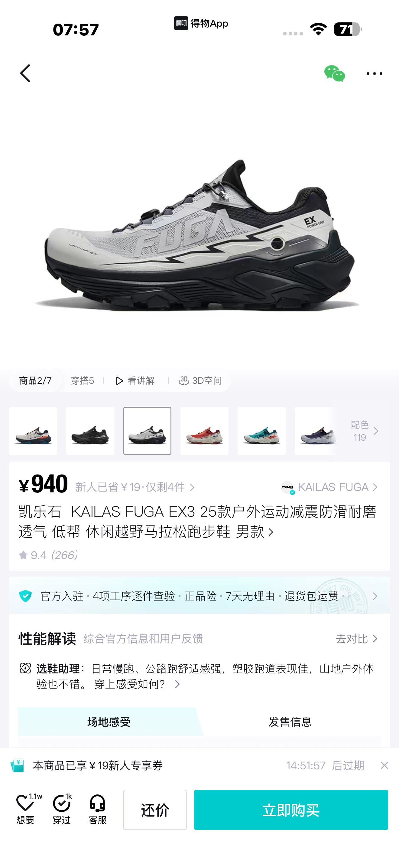➕细节,采用ECCEVAI厚底回弹中底设计,缓震性能比前代提升20%,有效减少脚部疲劳⚠️原厂海玻璃鞋垫,钢印字迹清晰可见,非市面垃圾印刷版本💰389【顶级纯原】凯乐石EX3 KAILAS FUGA EX3 25款 轻量化越野徒步鞋