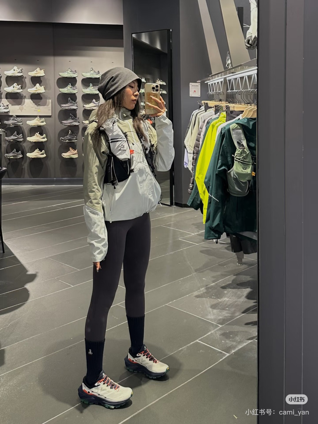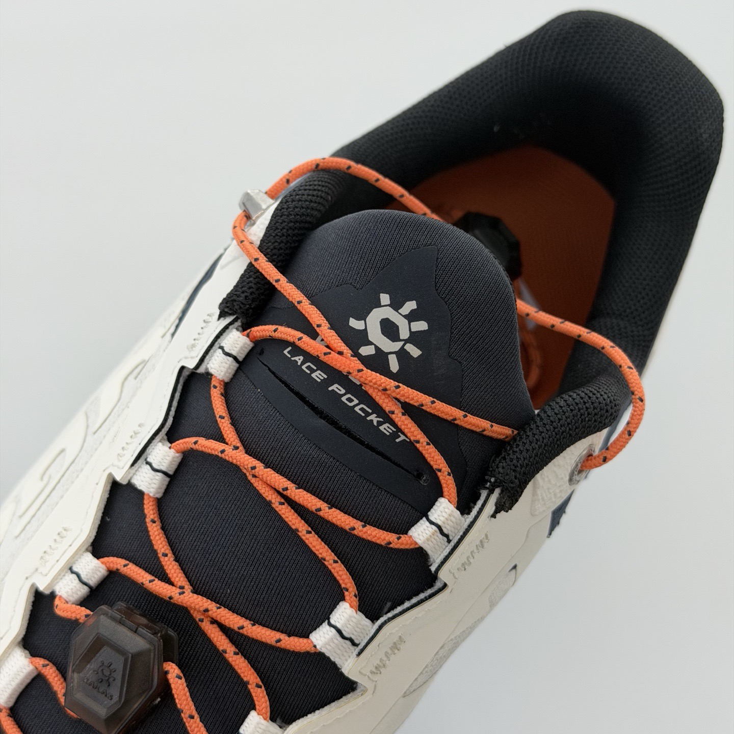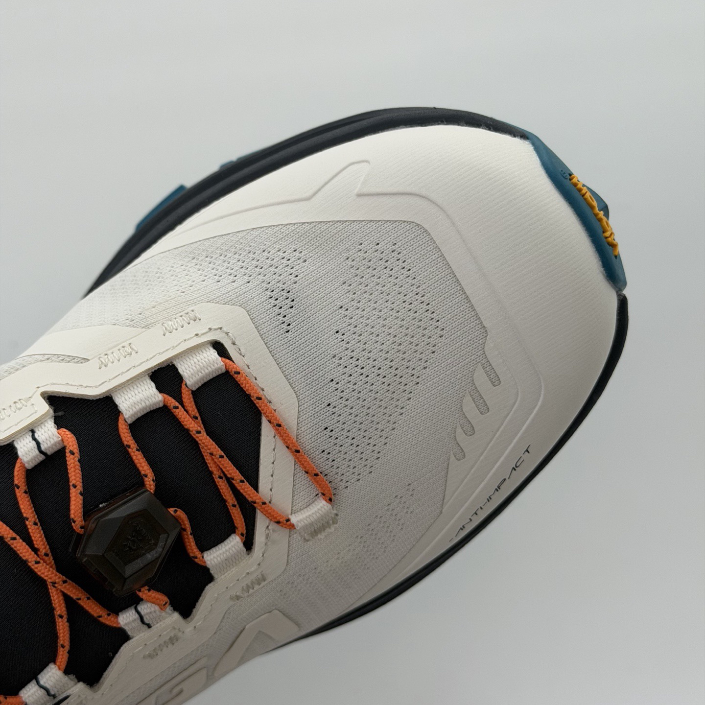 Aws 3.0两段式防前冲收紧系统太贴心啦!下坡时,前面的扣一拉紧,就能防止脚趾往前冲,避免黑指甲。还有2.0固定防沙套,操作方便,防止沙石进入鞋内磨损脚部。
