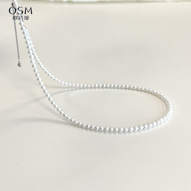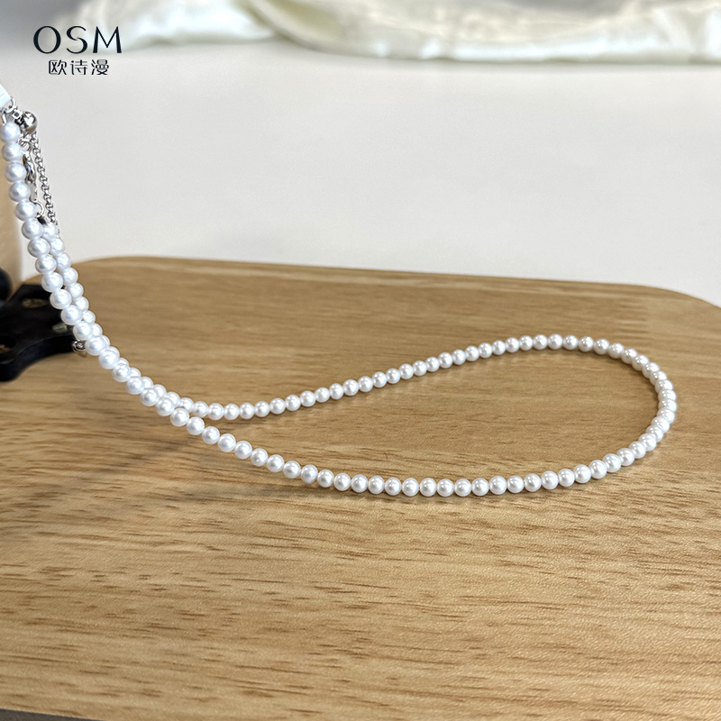 欧诗漫小米珠珍珠项链baby链4-5mm 基本正圆无暇强光