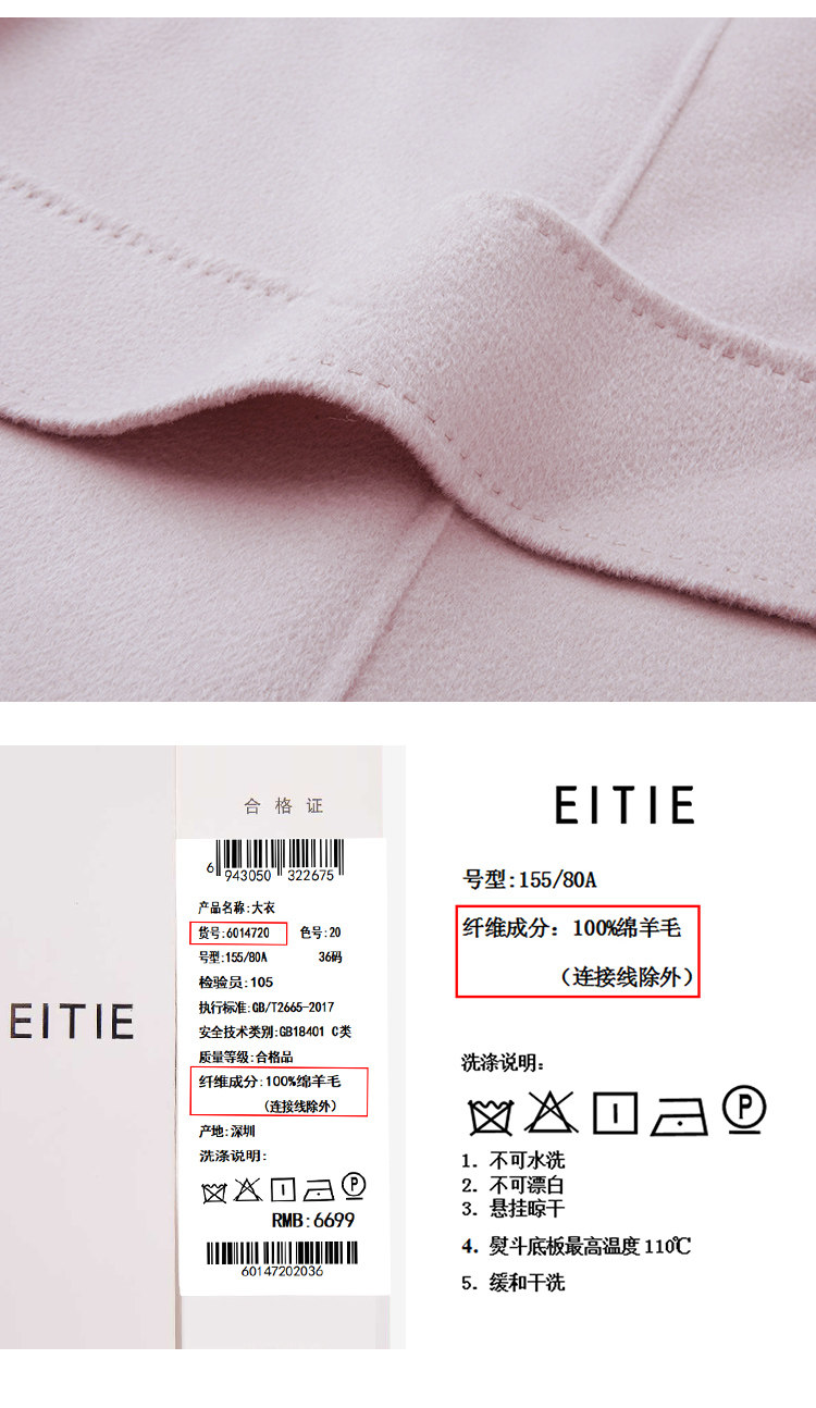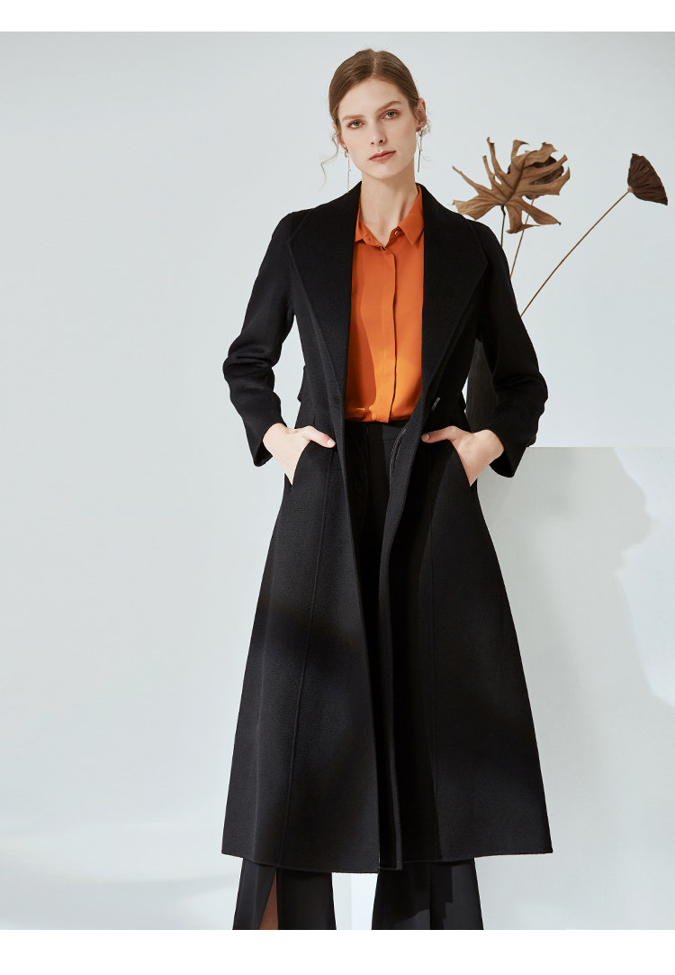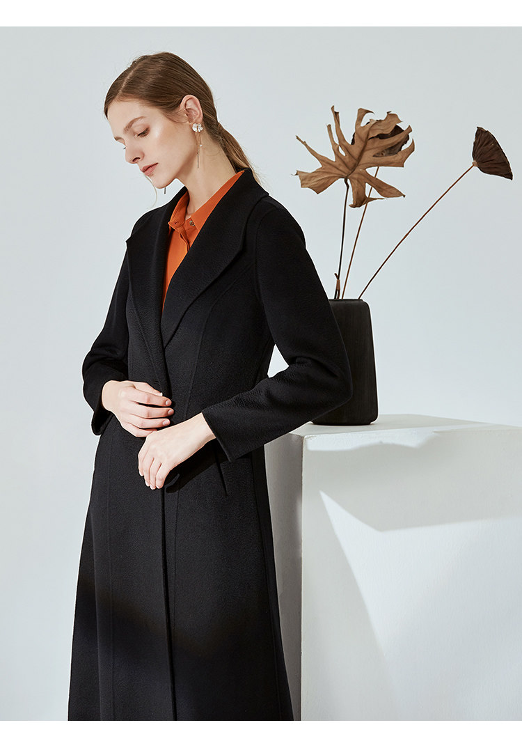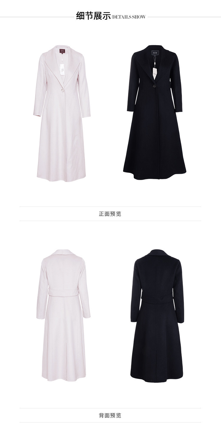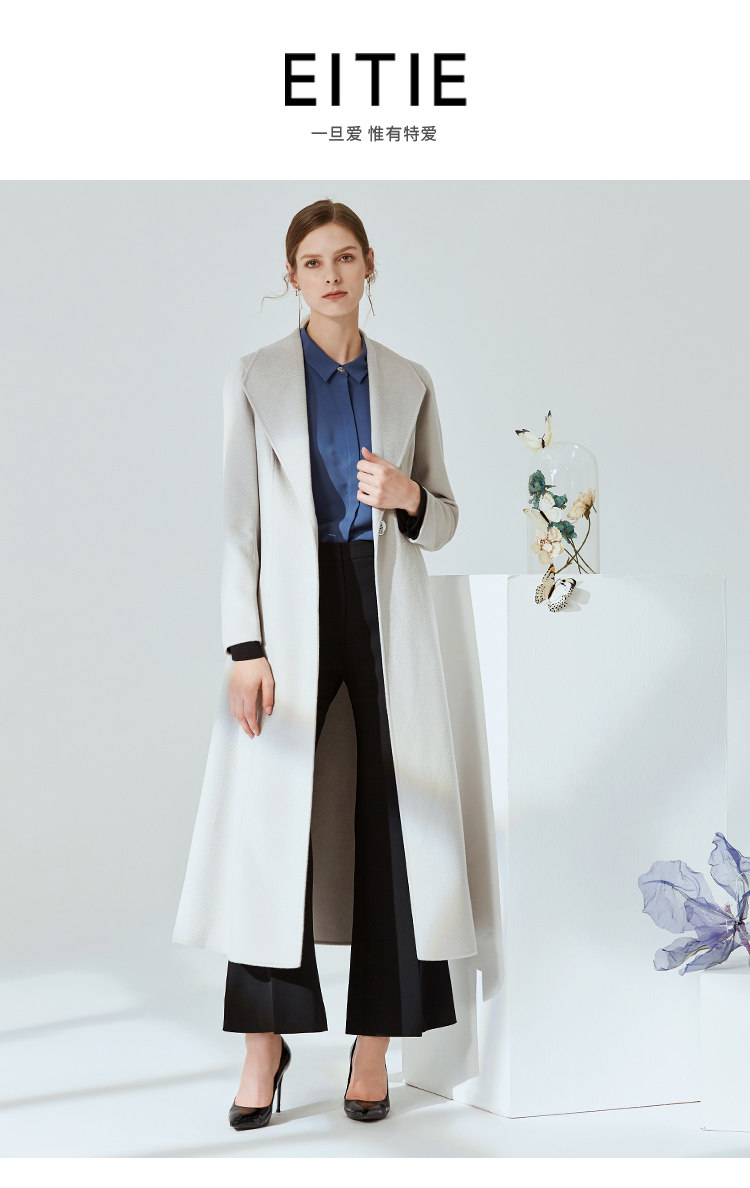 EITIE爱特爱冬季气质翻领修身双面呢羊毛大衣女中长款6014720