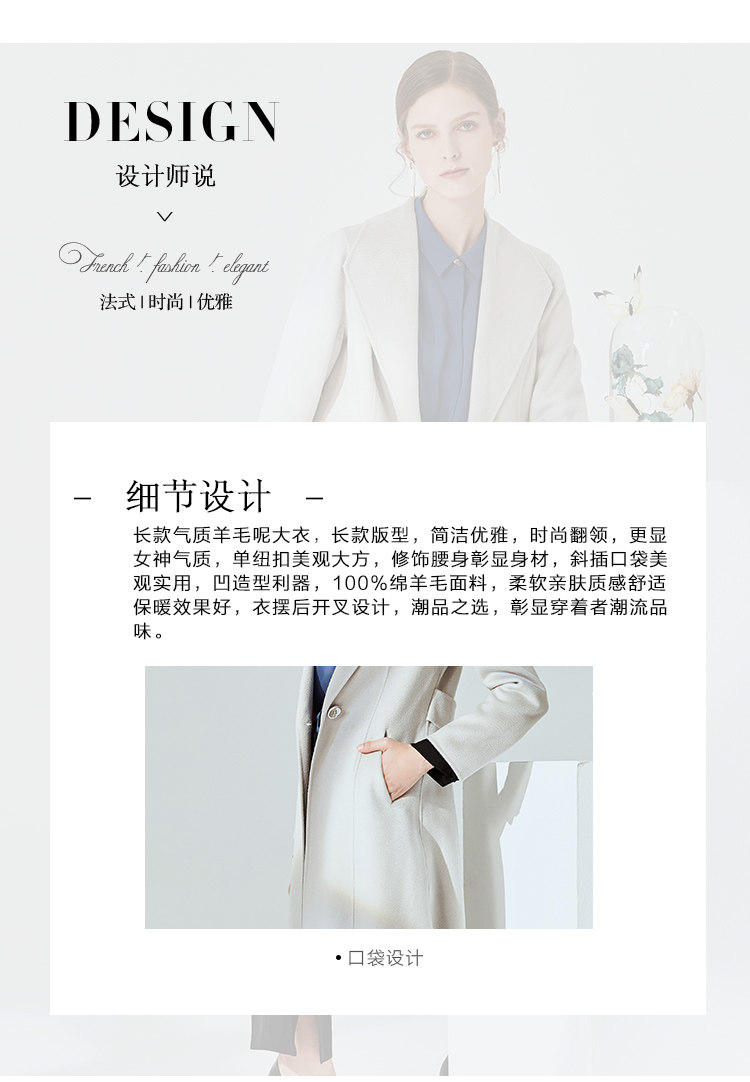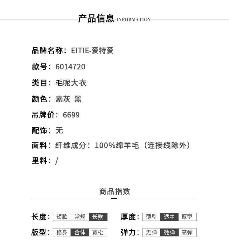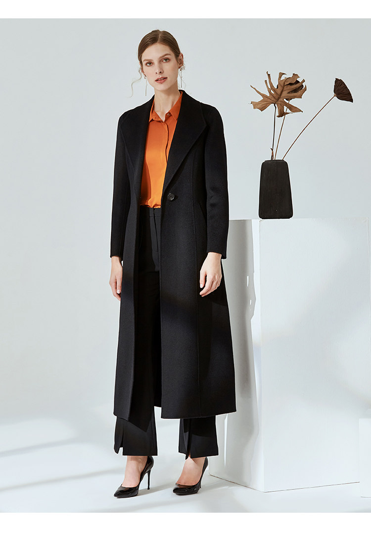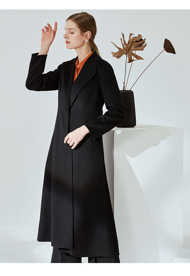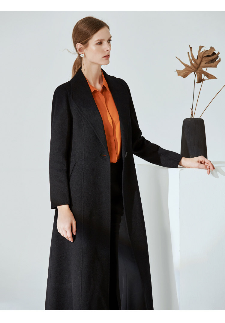 EITIE爱特爱冬季气质翻领修身双面呢羊毛大衣女中长款6014720