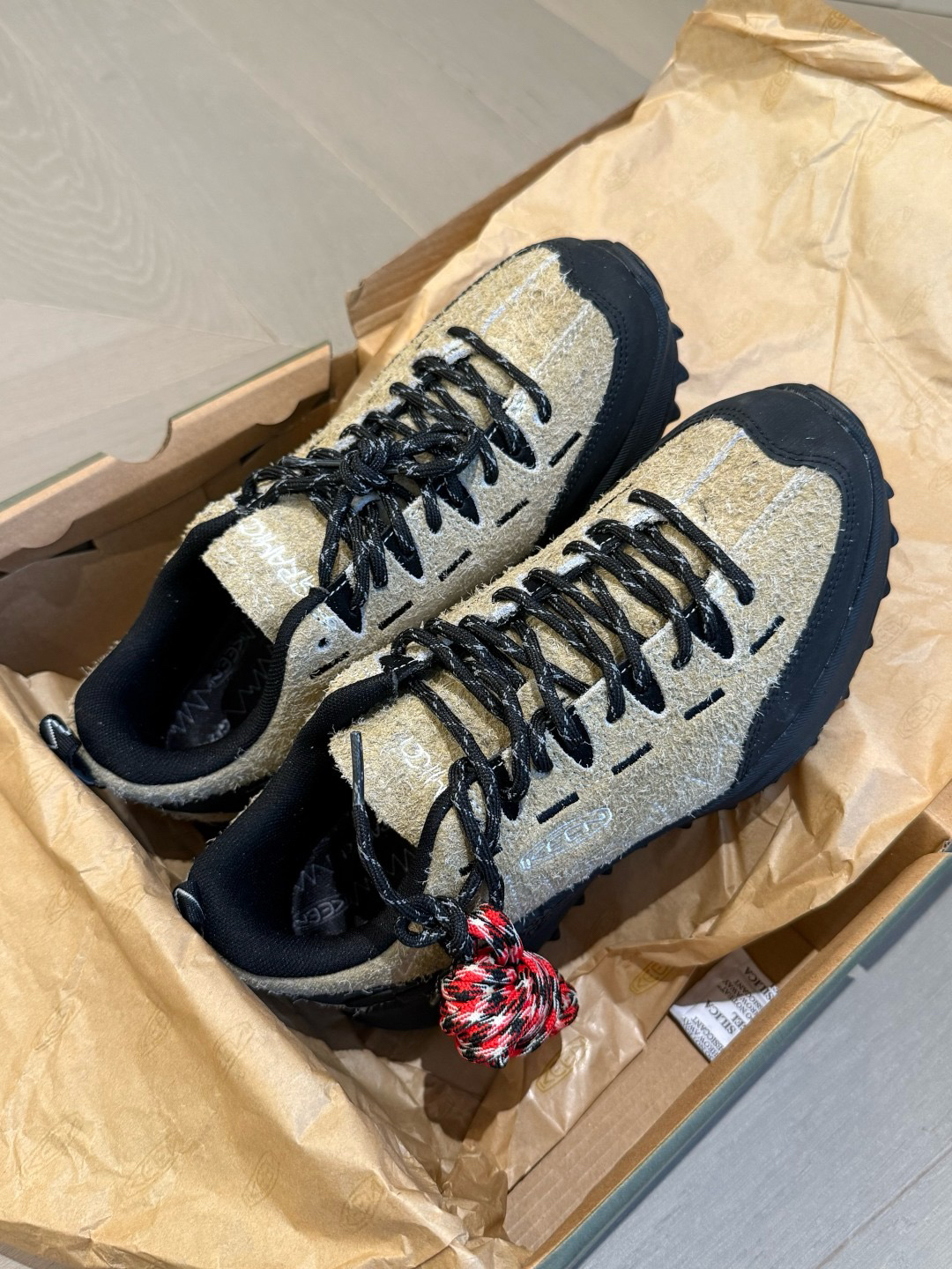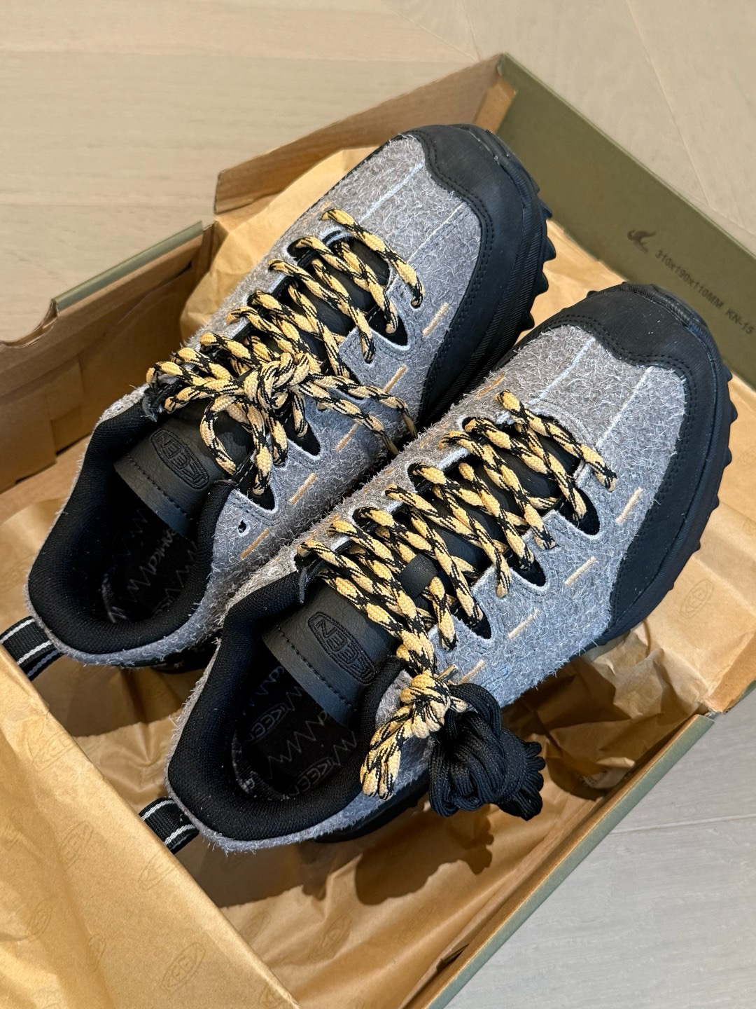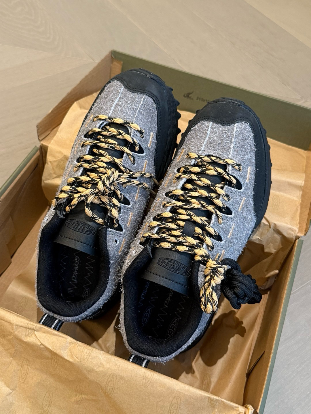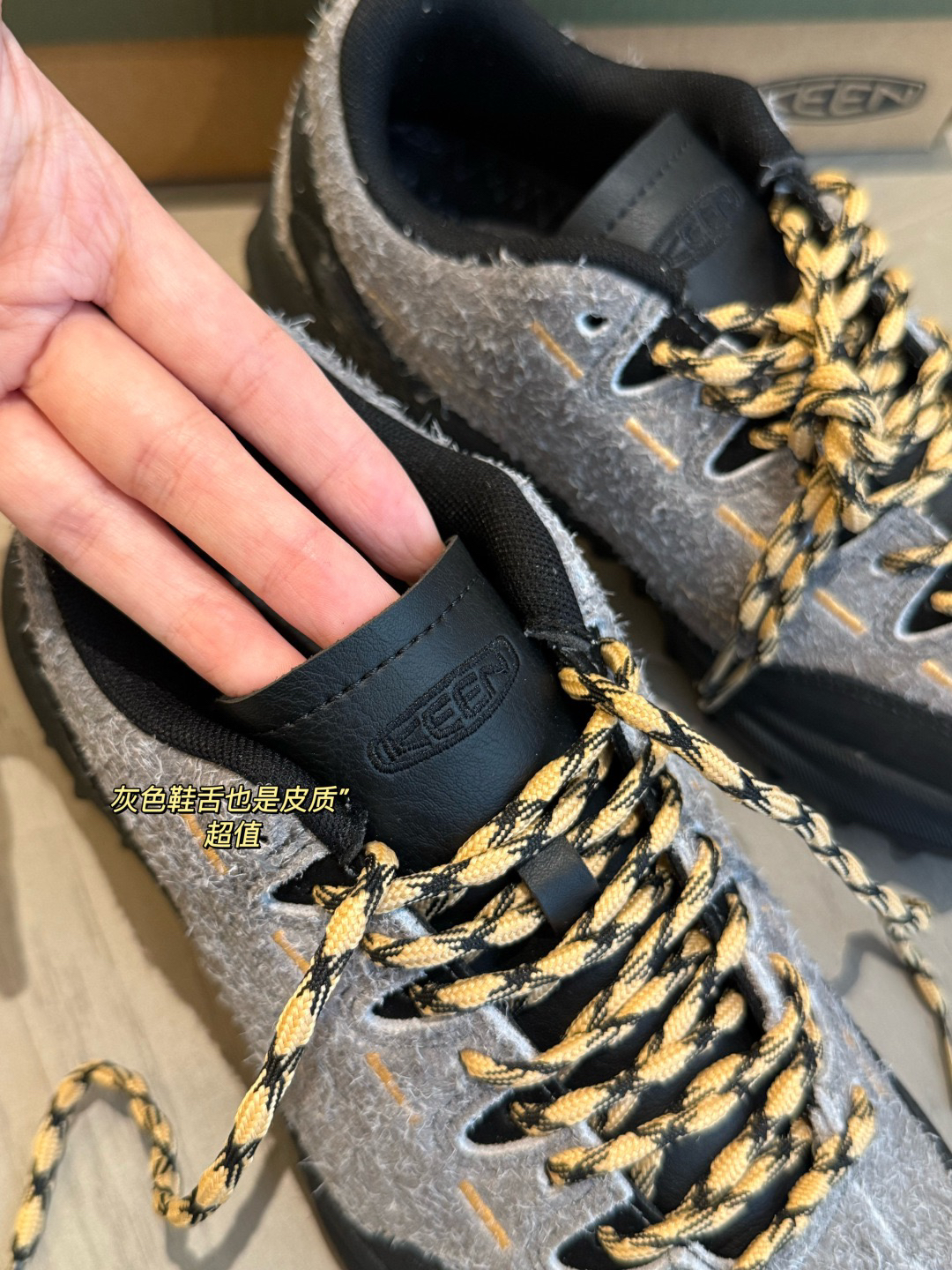 辛云来上脚的灰色/橡木浅黄色 还带了黑色鞋带