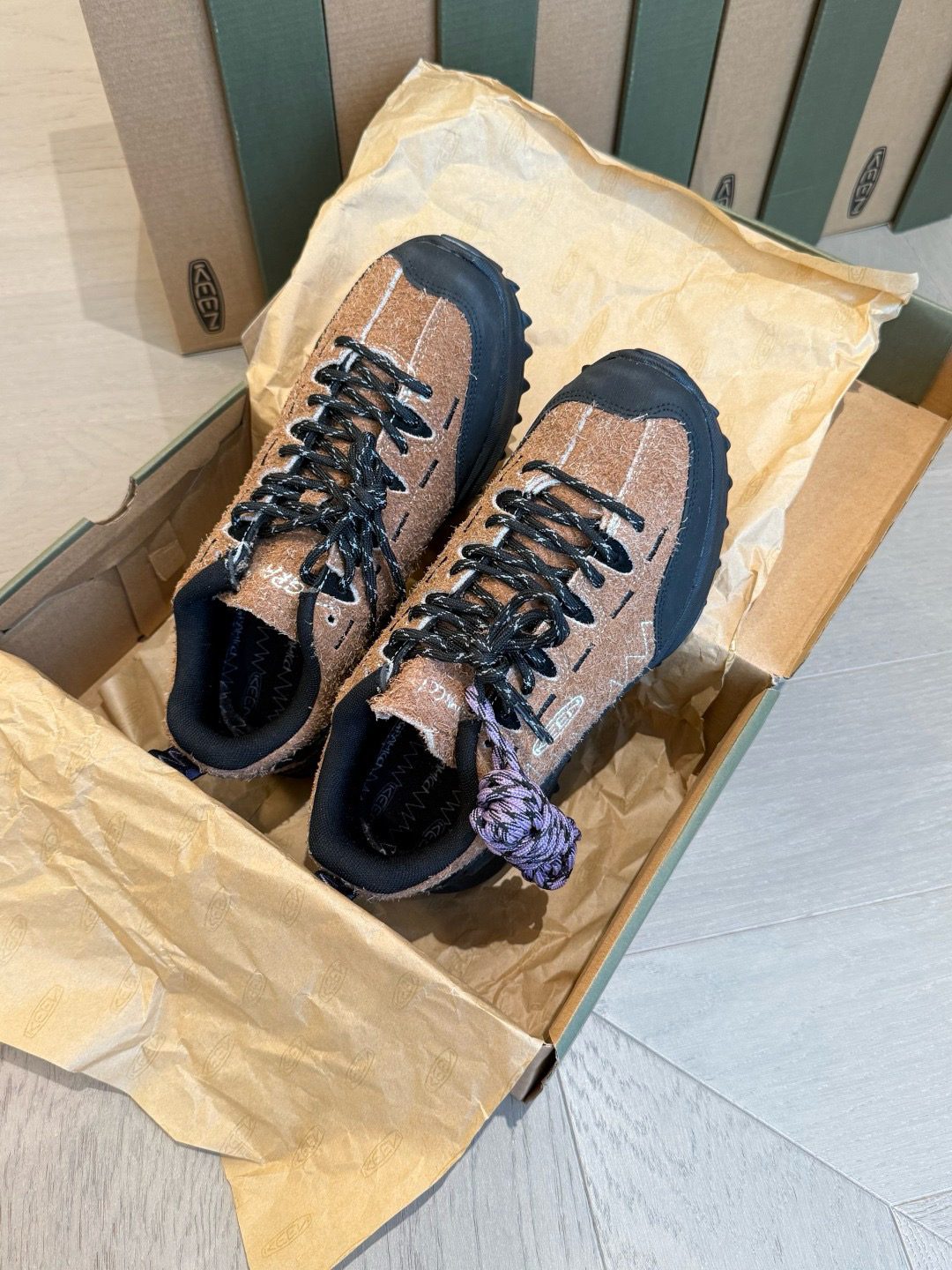 加上棕色系搭配紫色鞋带 很特别 必须自留哈哈哈哈