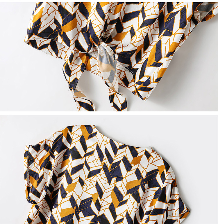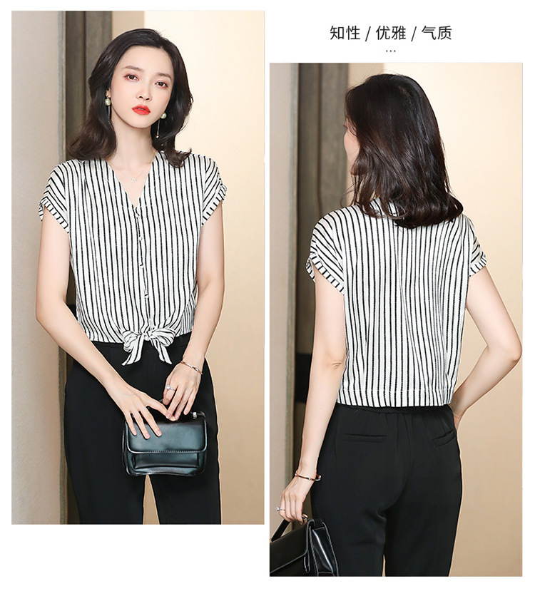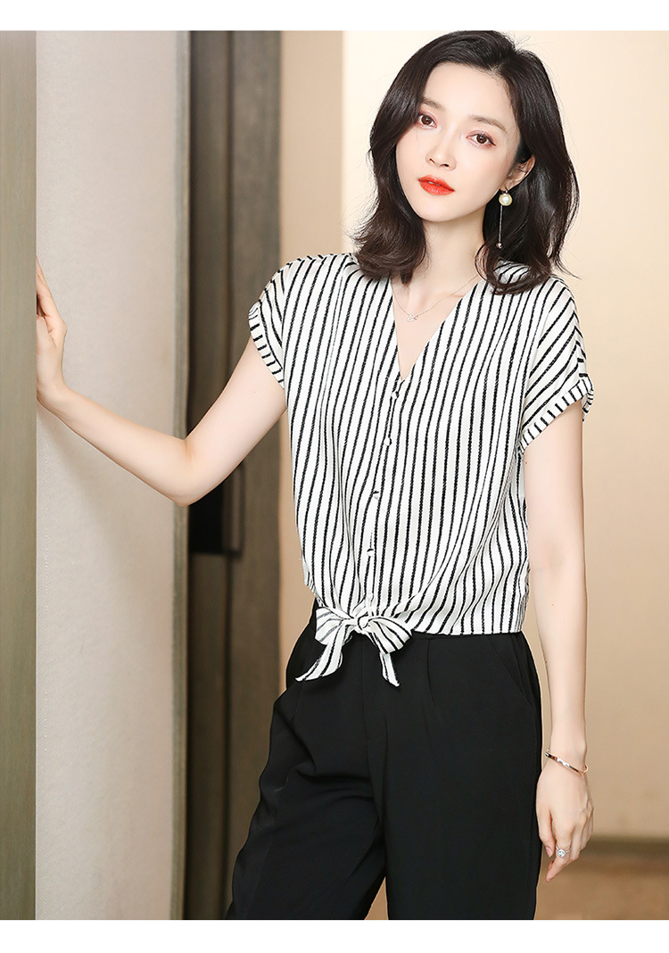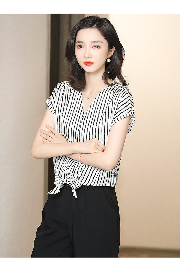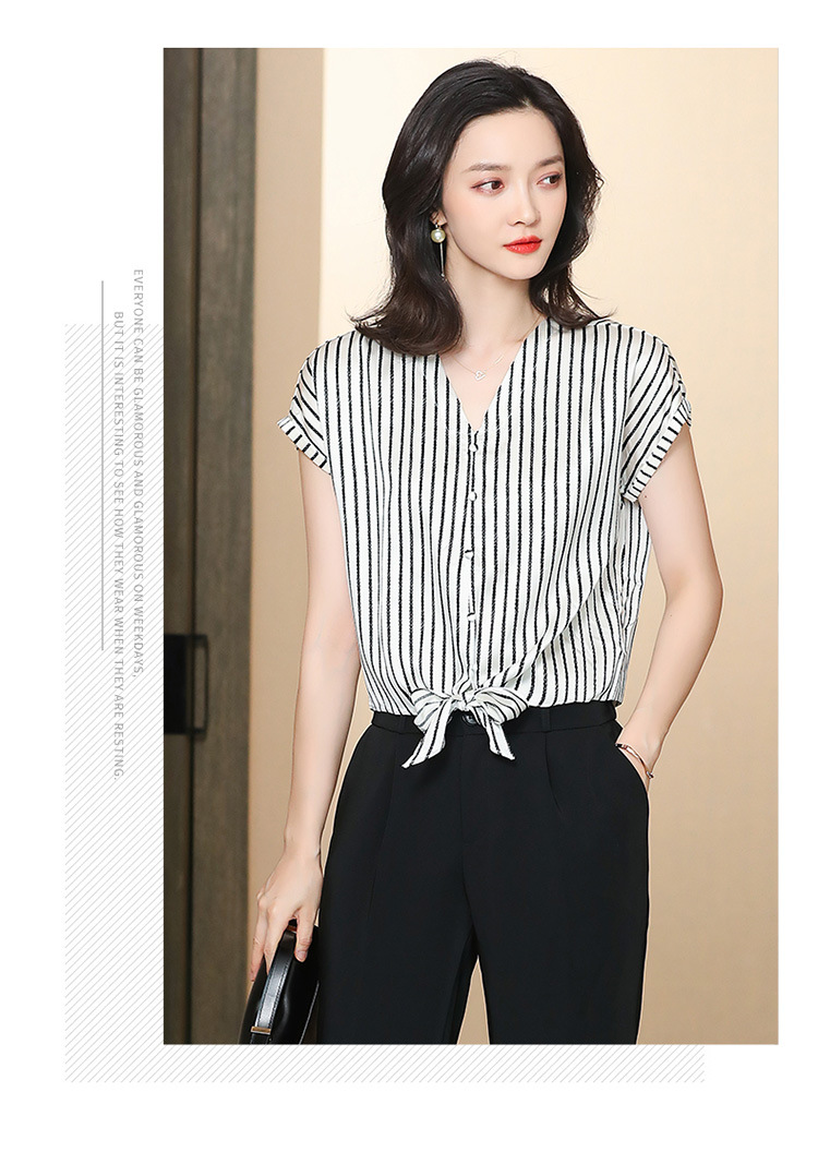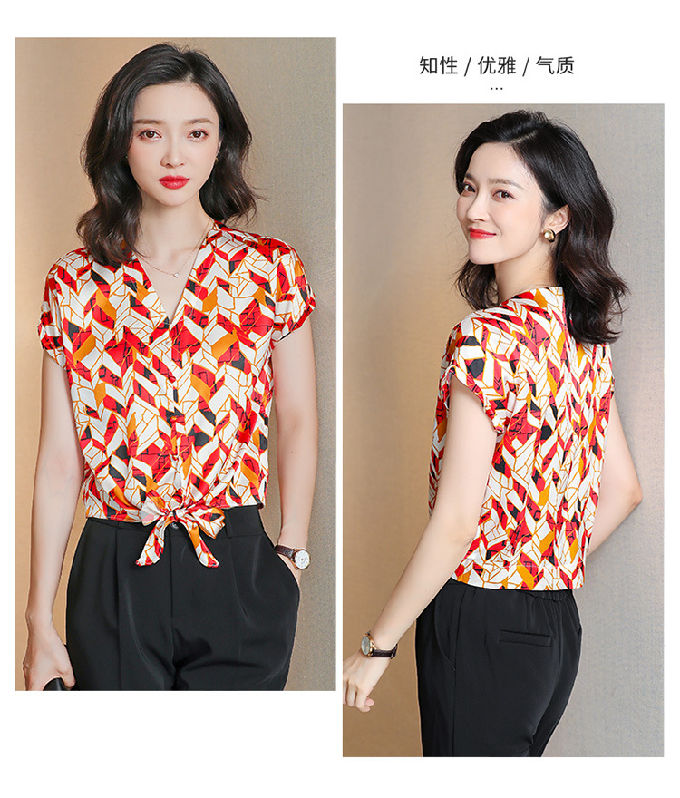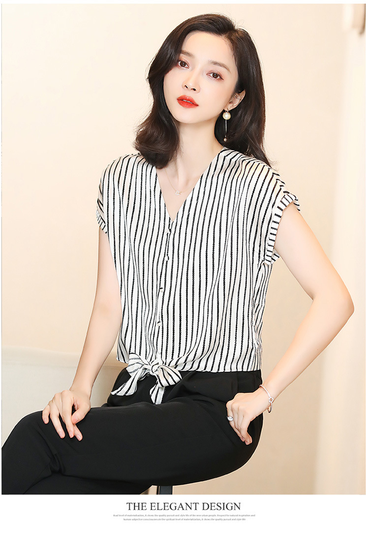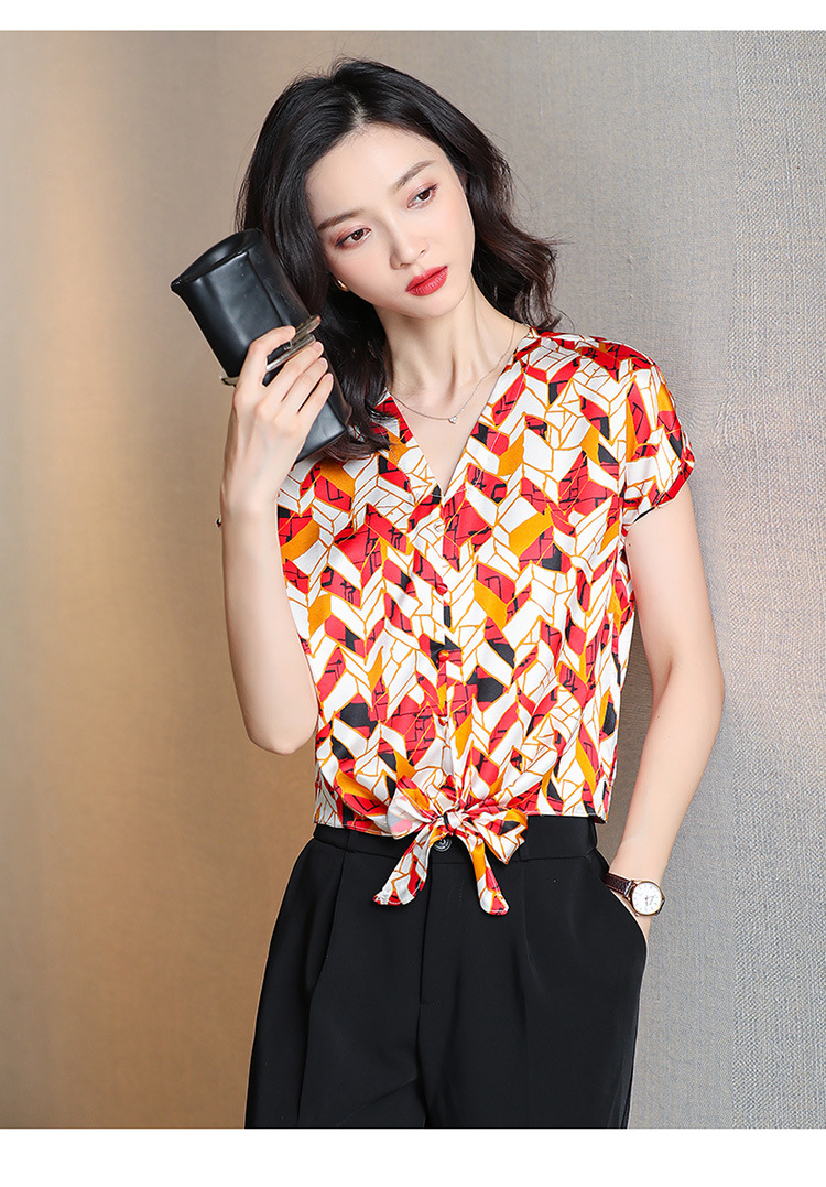 丁摩 真丝衬衫女士新款夏季V领短袖格纹别致设计感小众上衣5ZF-3358