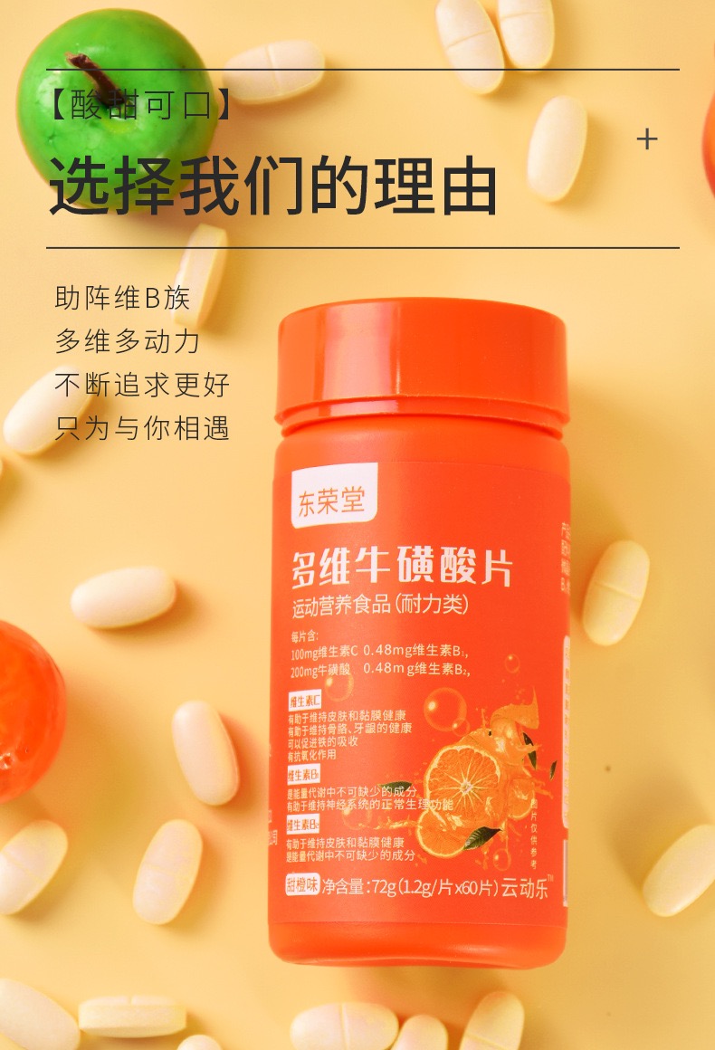 【1瓶60片】拍3发5多维牛磺维生素片维生素C维生素B