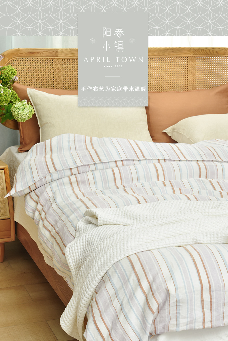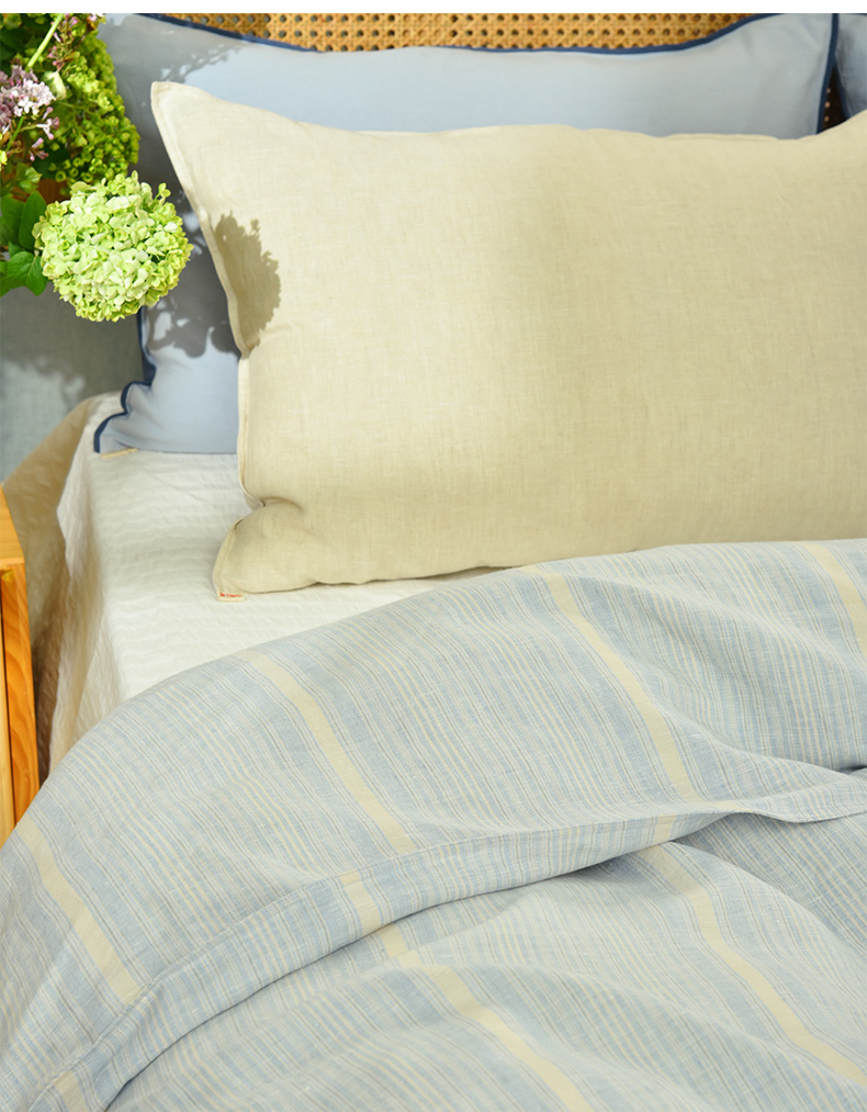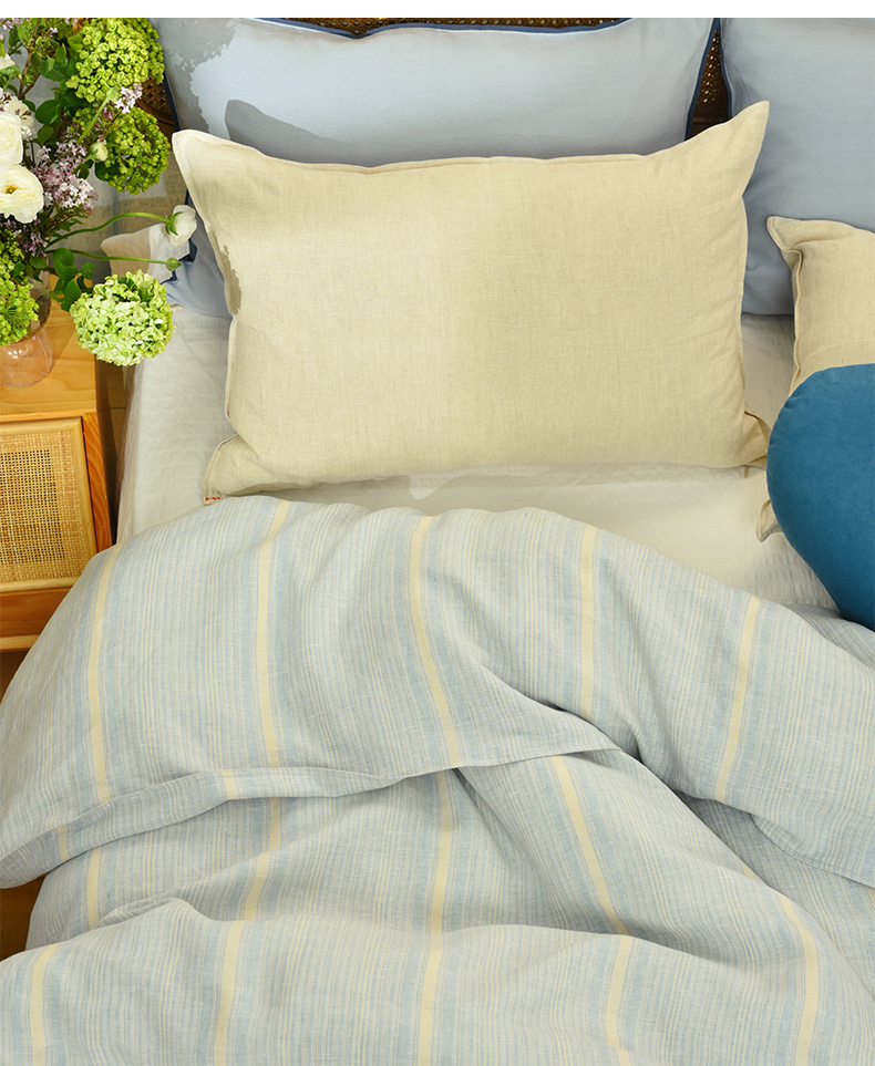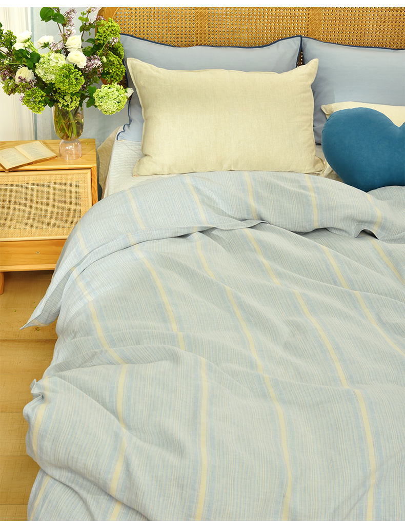 蓝色条纹系列被罩卧室轻奢亚麻床品