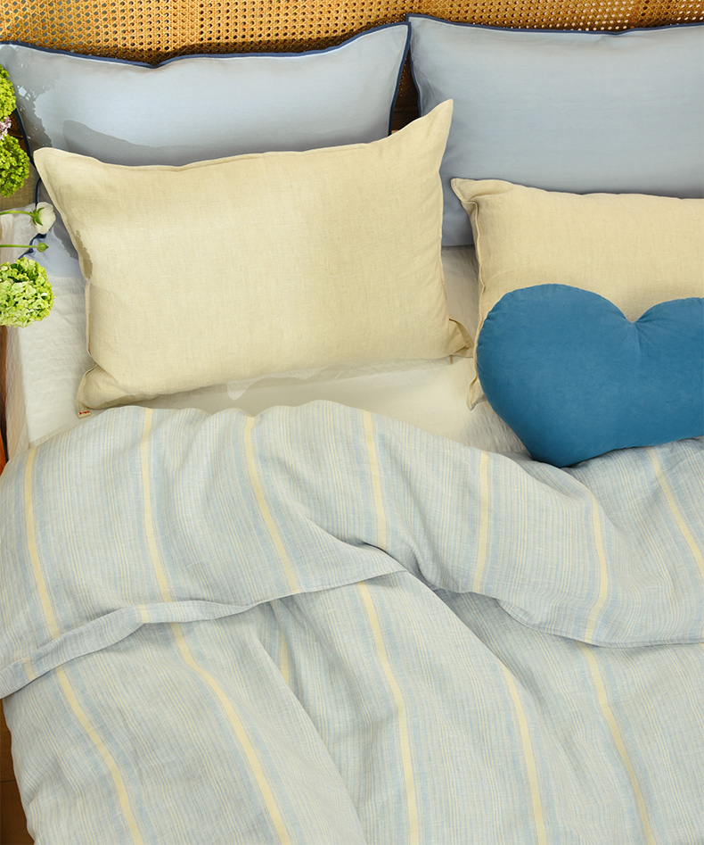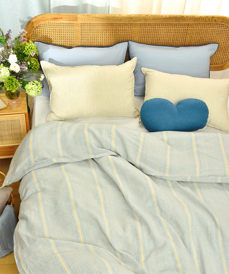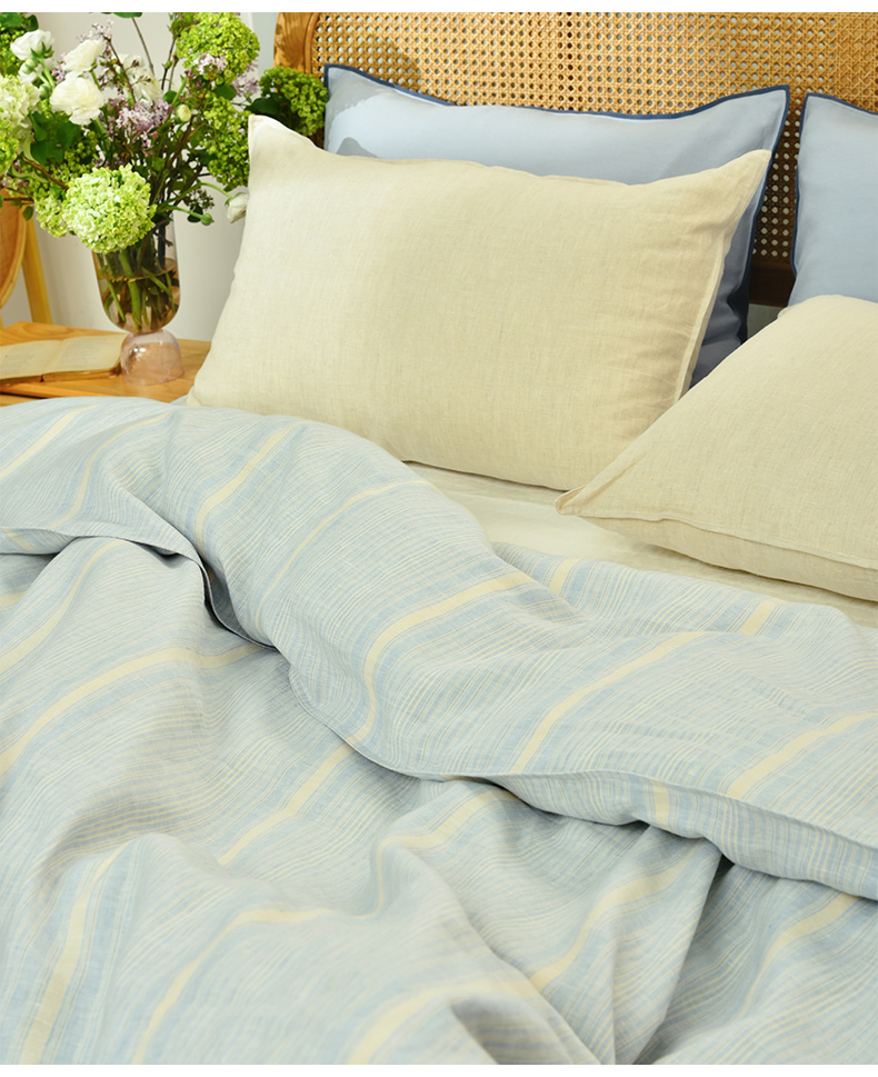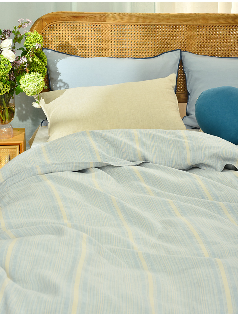 蓝色条纹系列被罩卧室轻奢亚麻床品