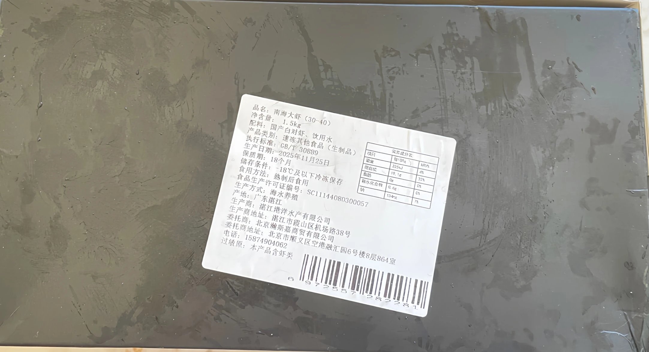 【品牌】大黄鲜森 【团品】南海大虾 【规格】净重1.5kg/盒,一盒45-60只虾左右 【生产日期】近期 【保质期】18个月(-18 c冷冻贮存) 【包装】盒装 【产地】广东湛江 【发货地】山东仓/长沙仓 【发货快递】顺丰 【发货时间】48小时内 【不发货地区】新疆、西藏、青海、甘肃、云南、海南、港澳台 【退换货标准】:生鲜食品类不支持七天无理由,不支持拦截、撤单、拒收!!介意勿拍!! 【注意事项】 客户收到冰袋化了,产品细微解冻均为正常情况,不影响食用情况下不售后,收到直接放到冰箱冷冻哦。介意请谨慎下单! 冷冻品快递一旦发出后拒绝任何形式拒签,收到货后请当场验货并第一时间放冷冻。 售后标准: 1、不能以不喜欢吃等没有客观依据的理由为条件要求赔偿。 2、收到如有质量问题请先签收并进行拍照(面单+商品照片),并在6小时内反馈客服进行处理,超时无法售后。 3、物流上显示代收点签收,快递柜 自提网点/放门口等签收造成的售后不在理赔范围之内,任何形式的代签(快递柜、物业、门卫 )都不做售后处理。
