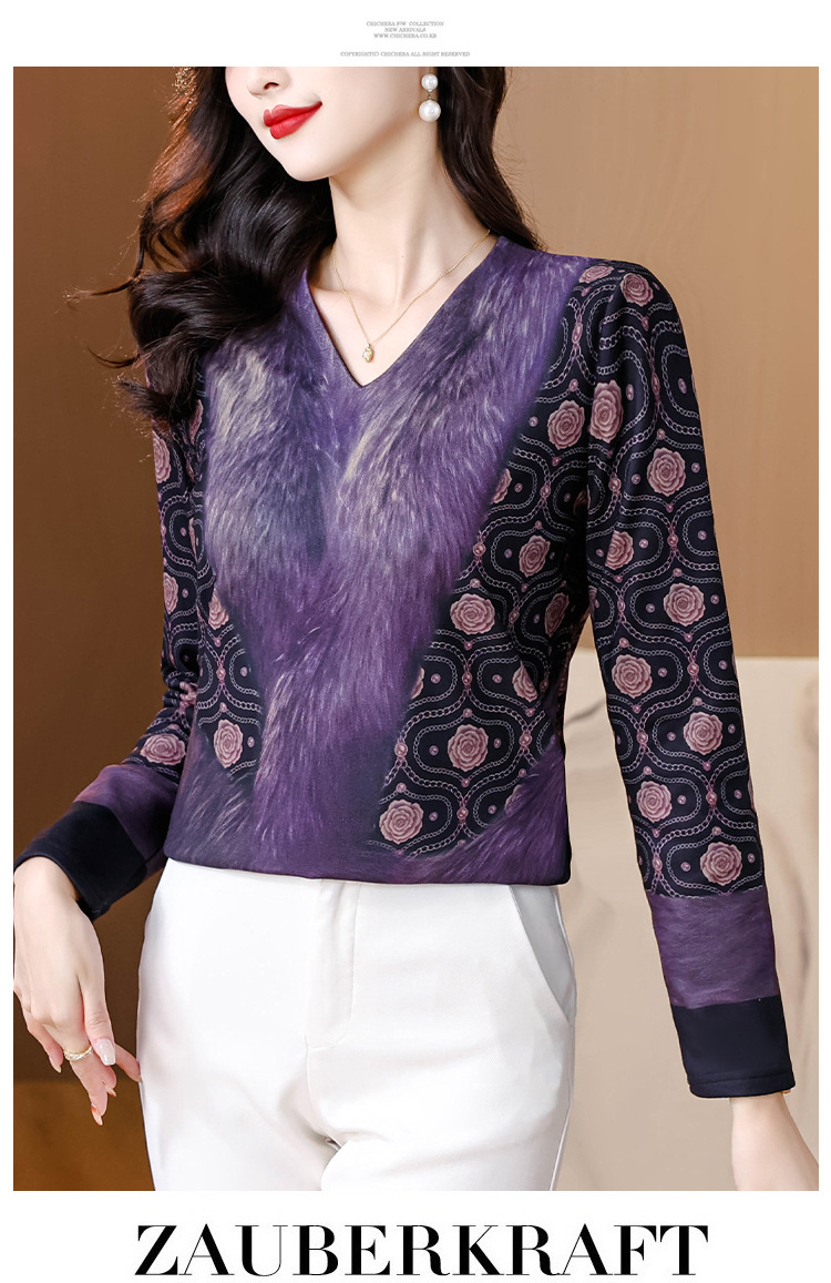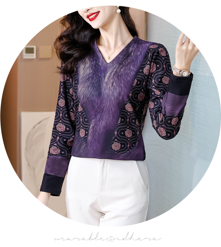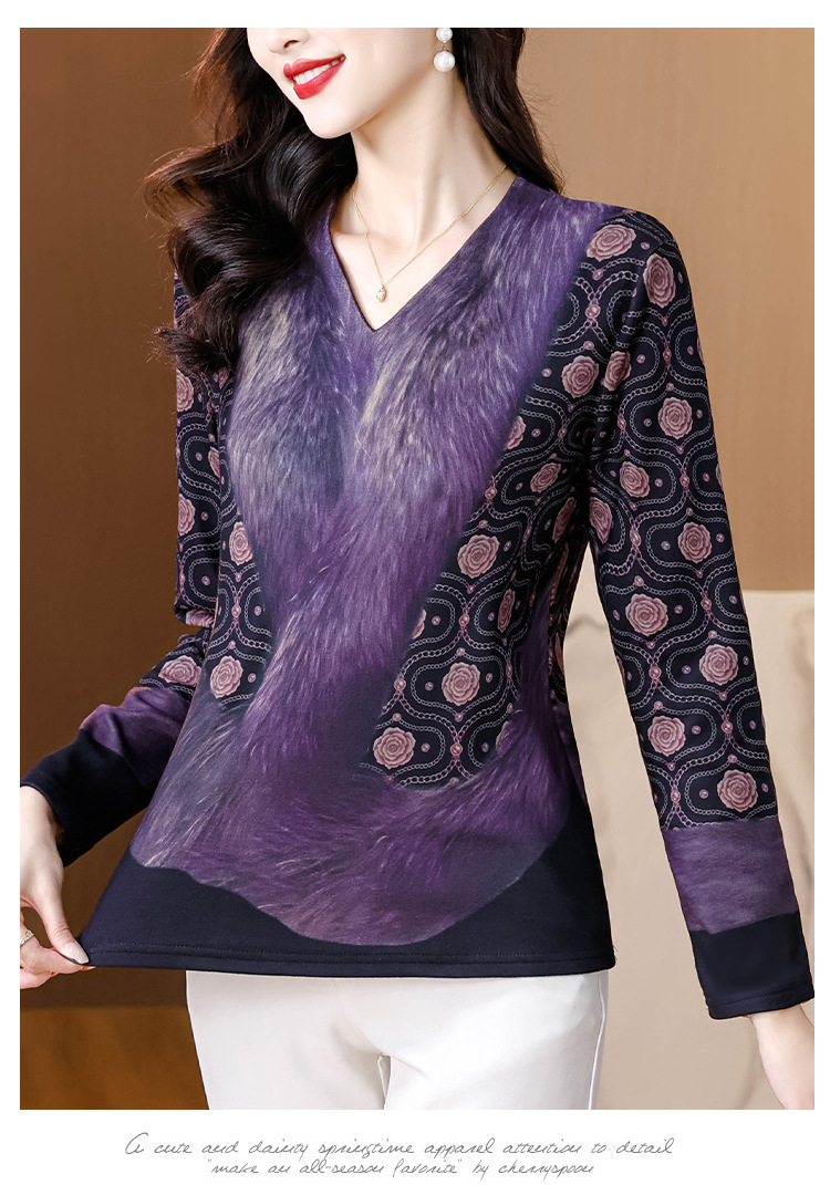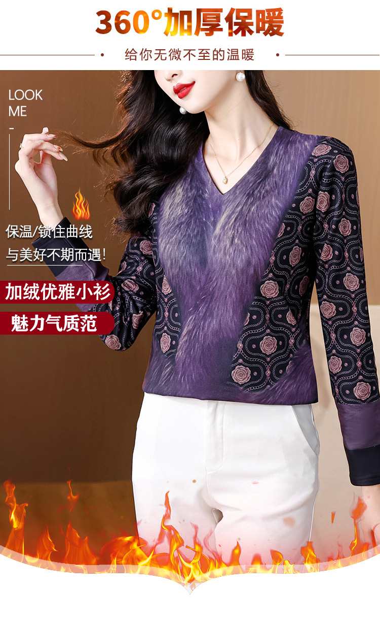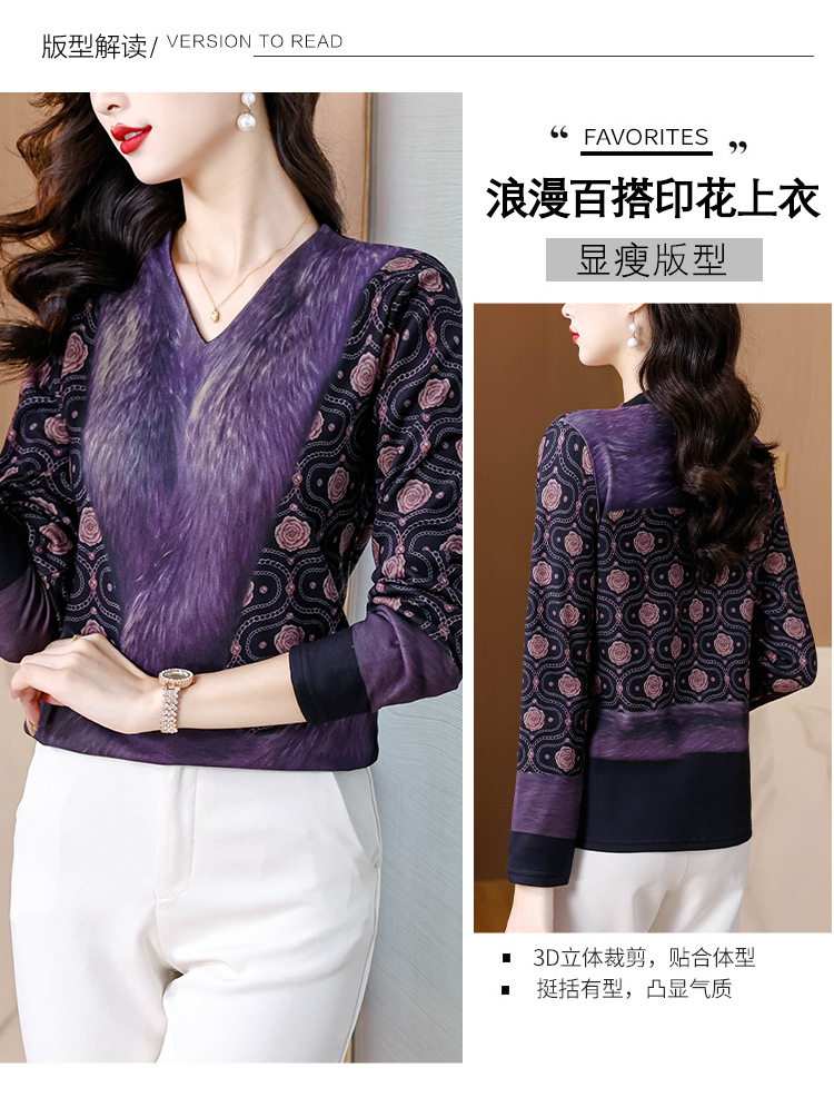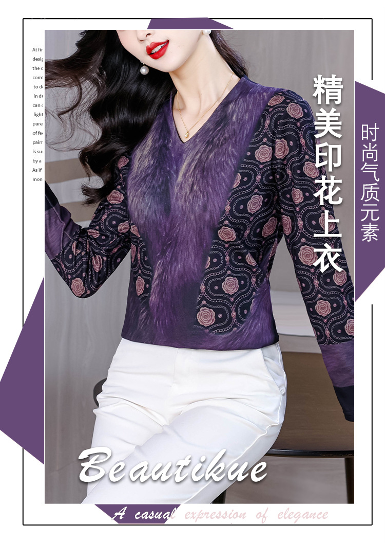 KQL E333N3165时尚妈妈贵妇一体双面绒打底衫气质显瘦长袖上衣t恤