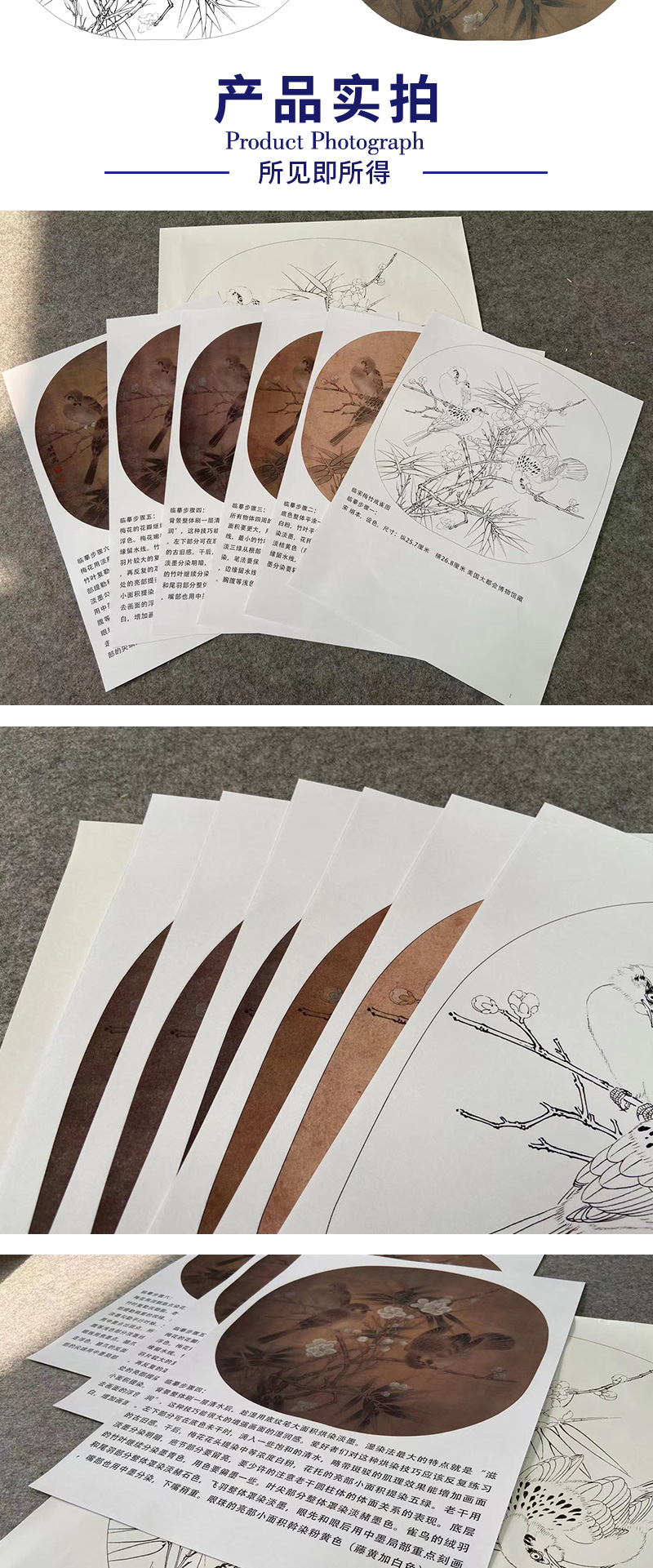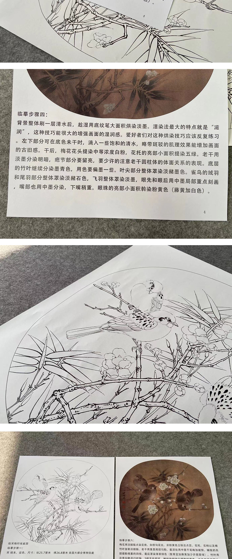 【有步骤、大彩图】李晓明工笔画白描底稿圆形小品《临宋梅竹戏雀图》梅花雀鸟临摹花鸟线稿KC04