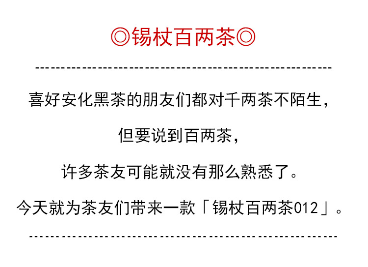 茶香记 锡杖百两茶012 安化黑茶 手工制作 木质香 烟香