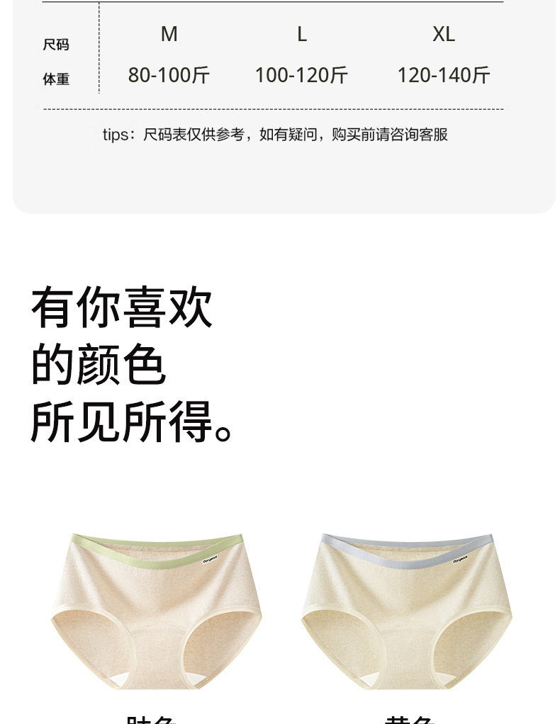 春节不打烊【长效抑菌❗️透气不闷】2026A类内裤女士彩棉纯棉加长抗菌裆无痕中少女三角裤女生内裤。jd