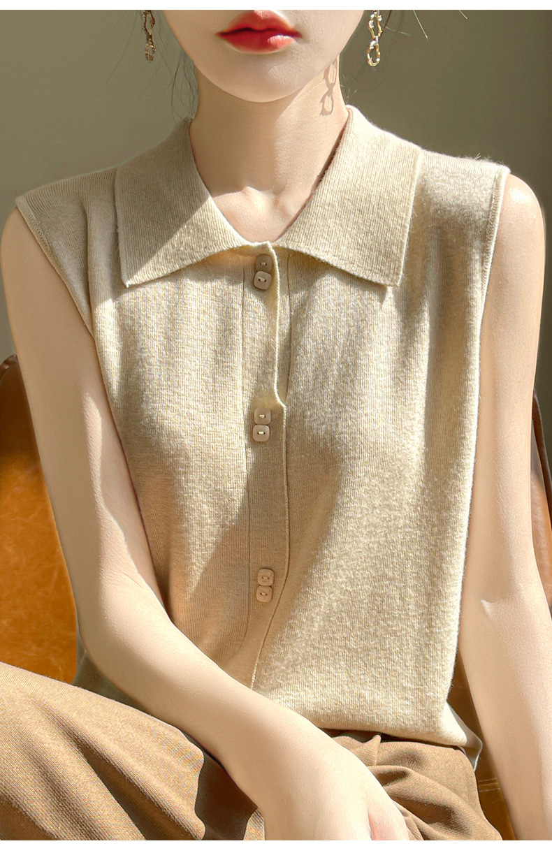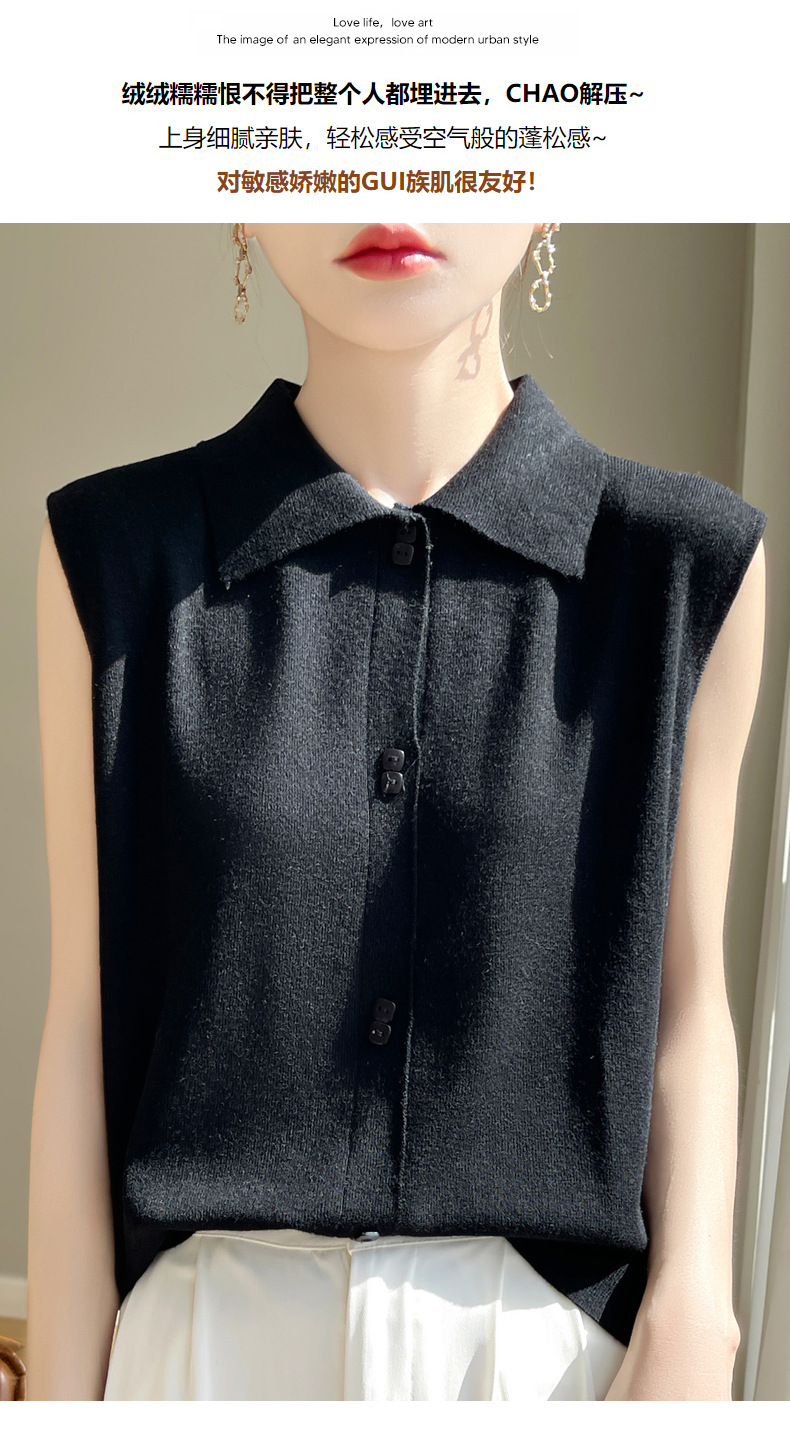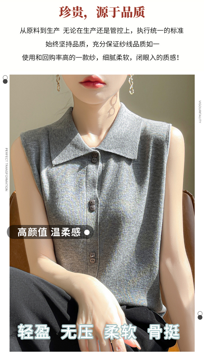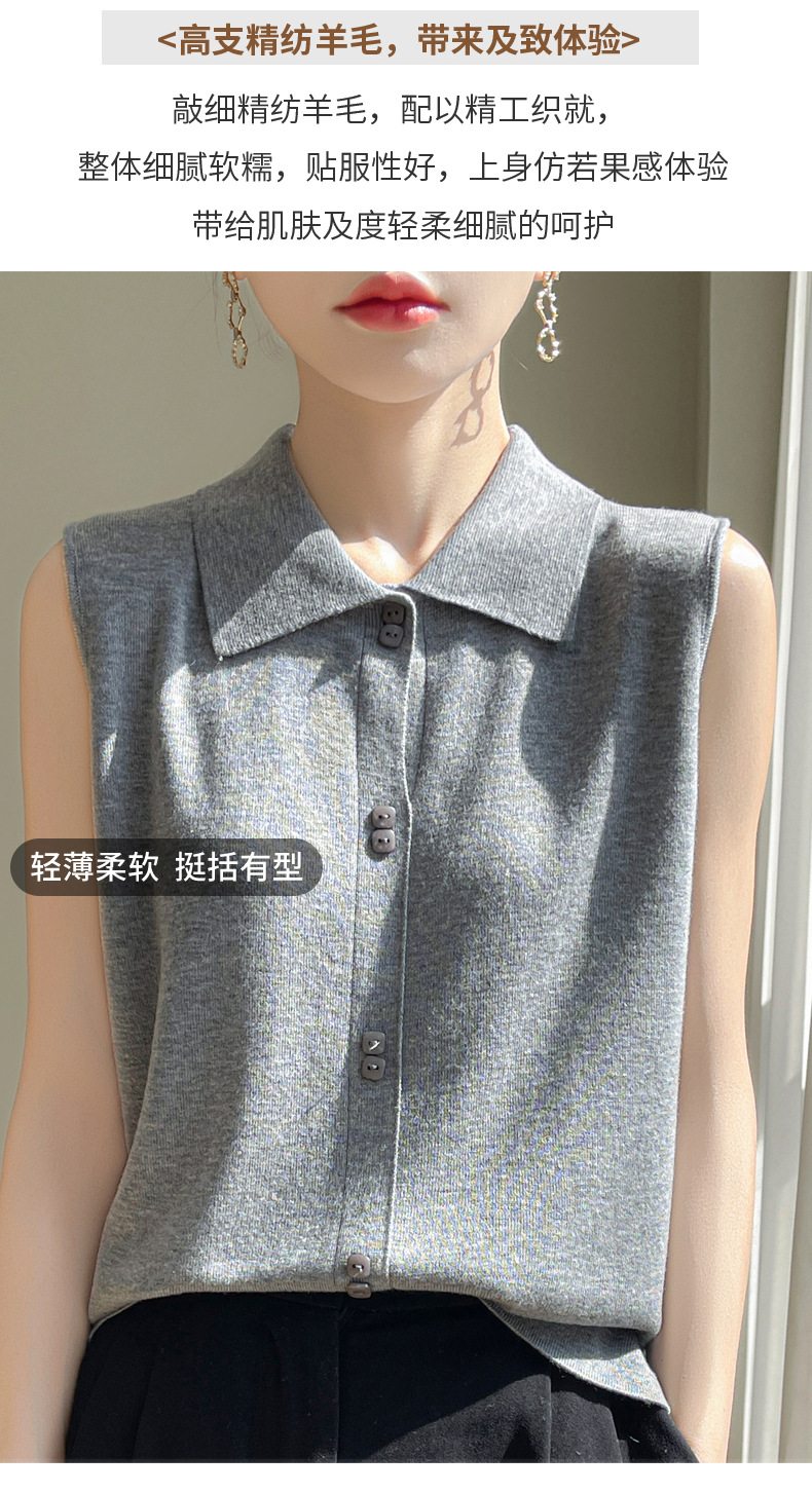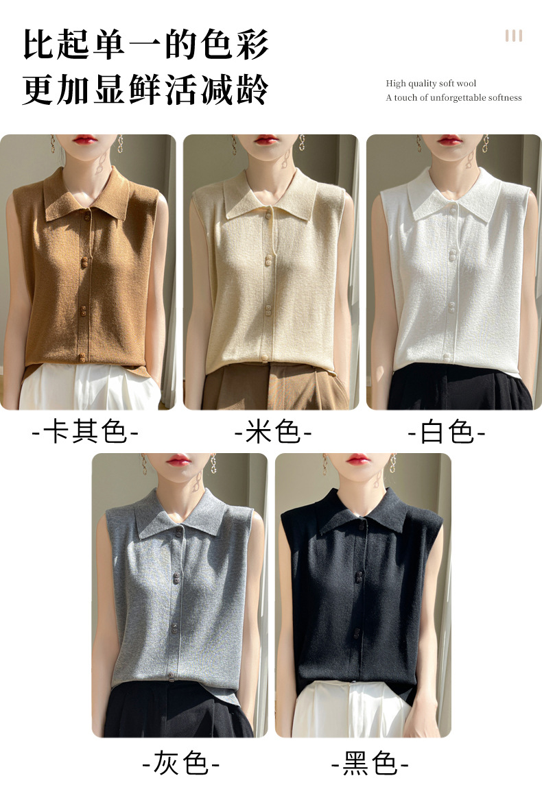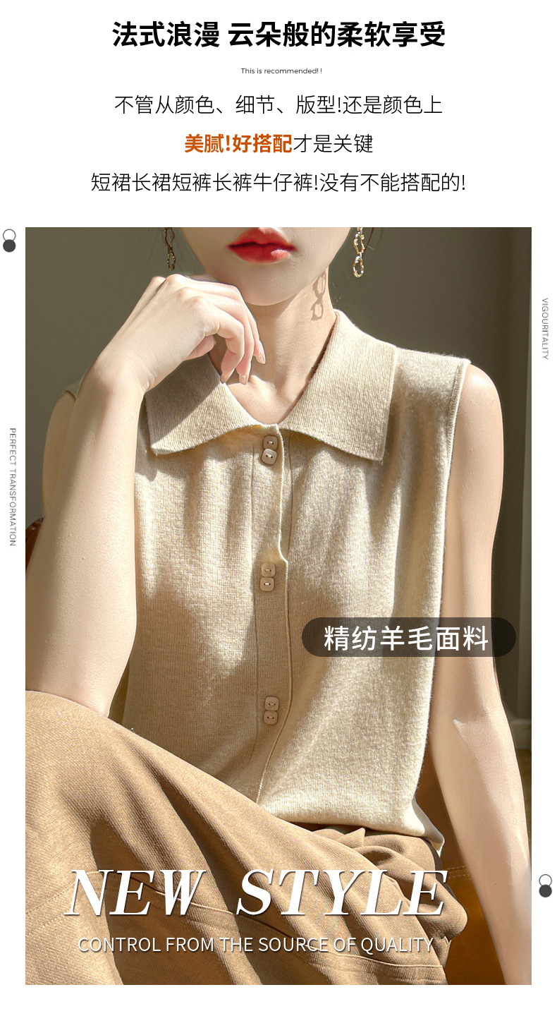 QHJY-JY1086新款POIO领无袖精纺羊毛针织女打底衫纯色翻领内搭叠穿针织背心