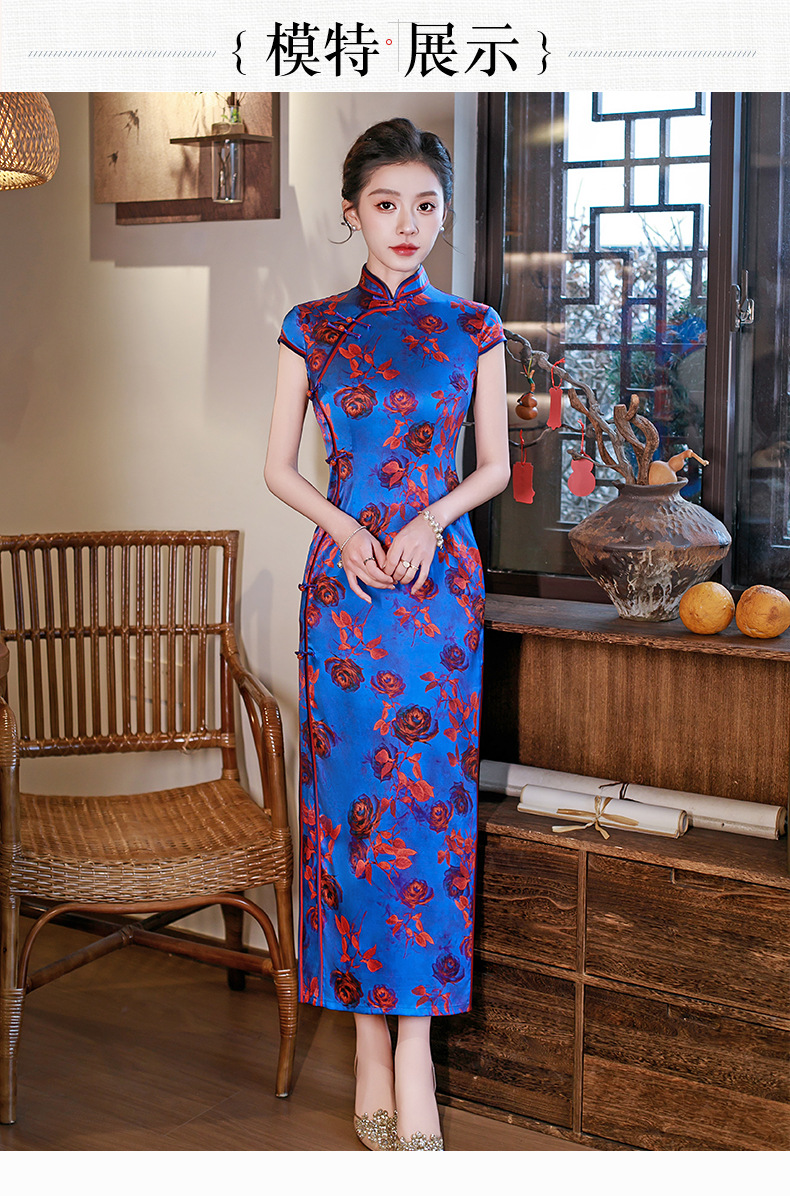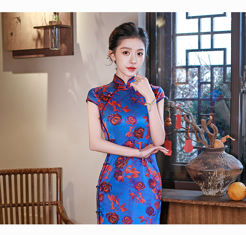 WX2026新款真丝旗袍长款改良中式桑蚕丝连衣裙优雅气质修身复古 商品图3