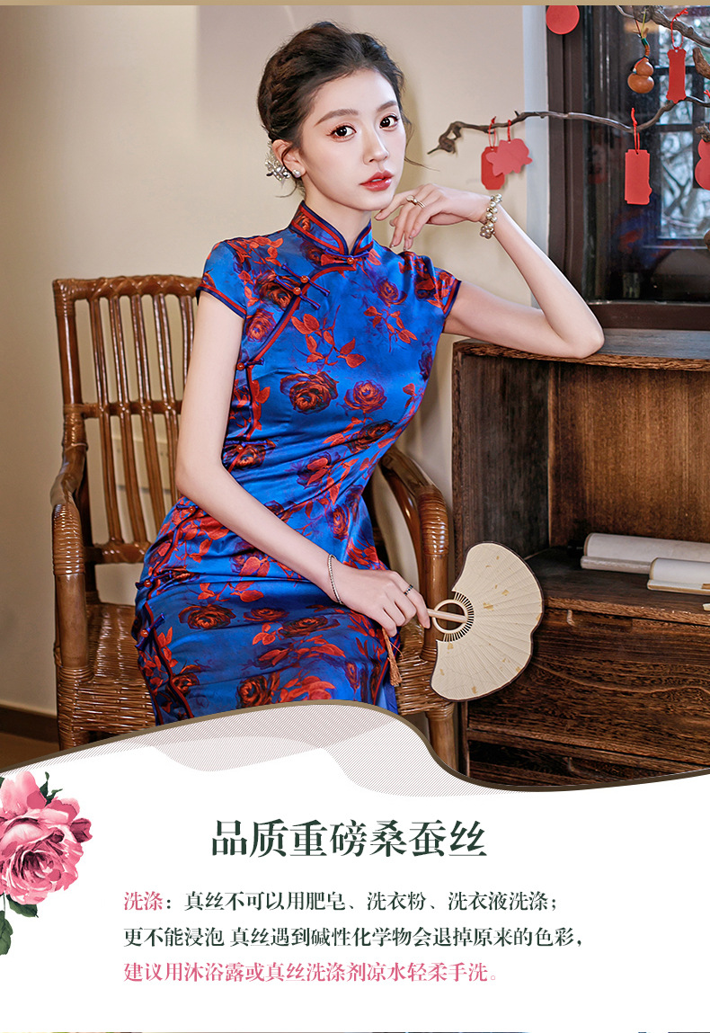 WX2026新款真丝旗袍长款改良中式桑蚕丝连衣裙优雅气质修身复古 商品图4