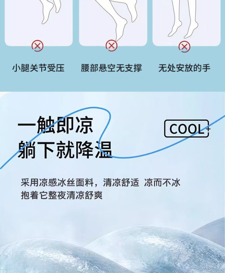 【秒杀】【S姆同款冰皮抱抱枕】A类凉感冰丝面料 可拆洗 高回弹 不塌陷 柔软亲肤 加大号尺寸 隐藏式拉链头 人体工学设计 分区支撑 为侧睡量身定制