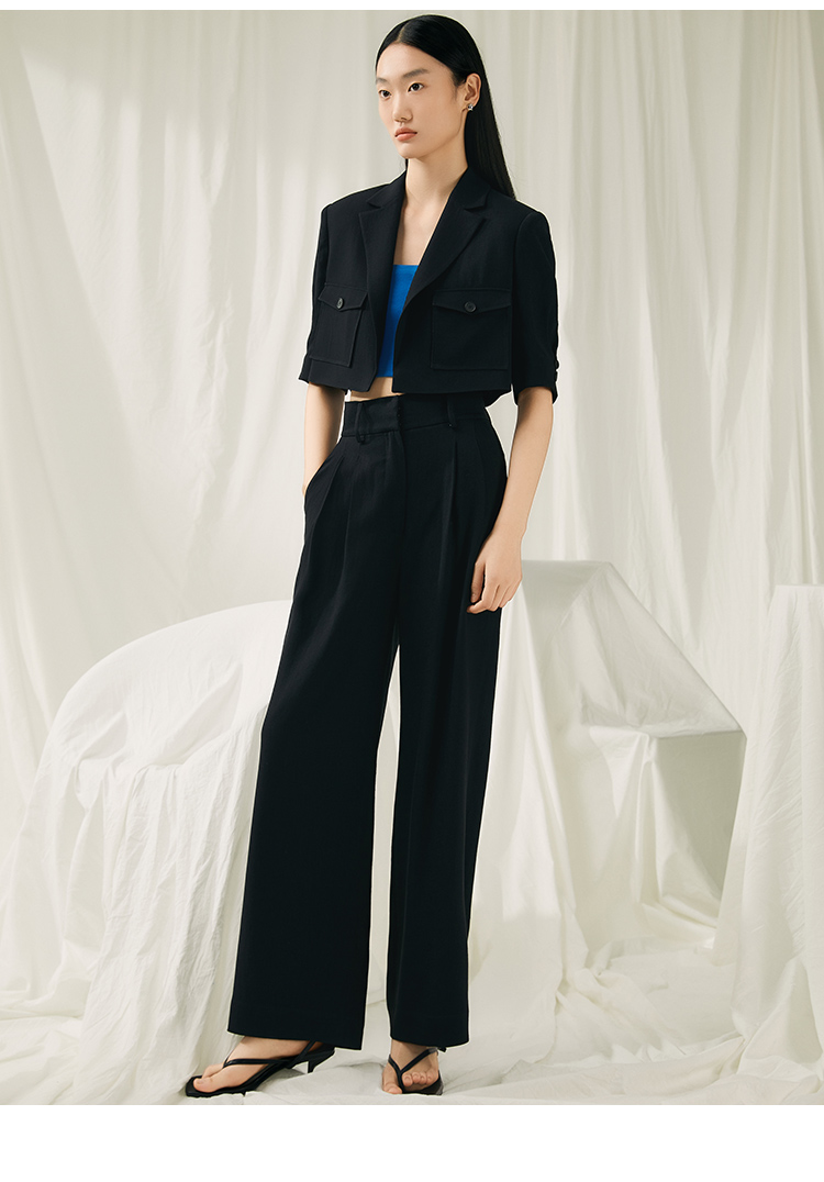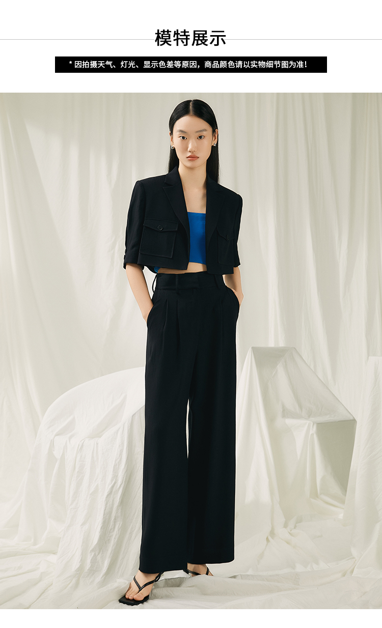 EITIE爱特爱春季新款高腰微喇显瘦OL通勤百搭干练纯色休闲裤A2305113