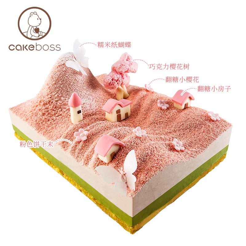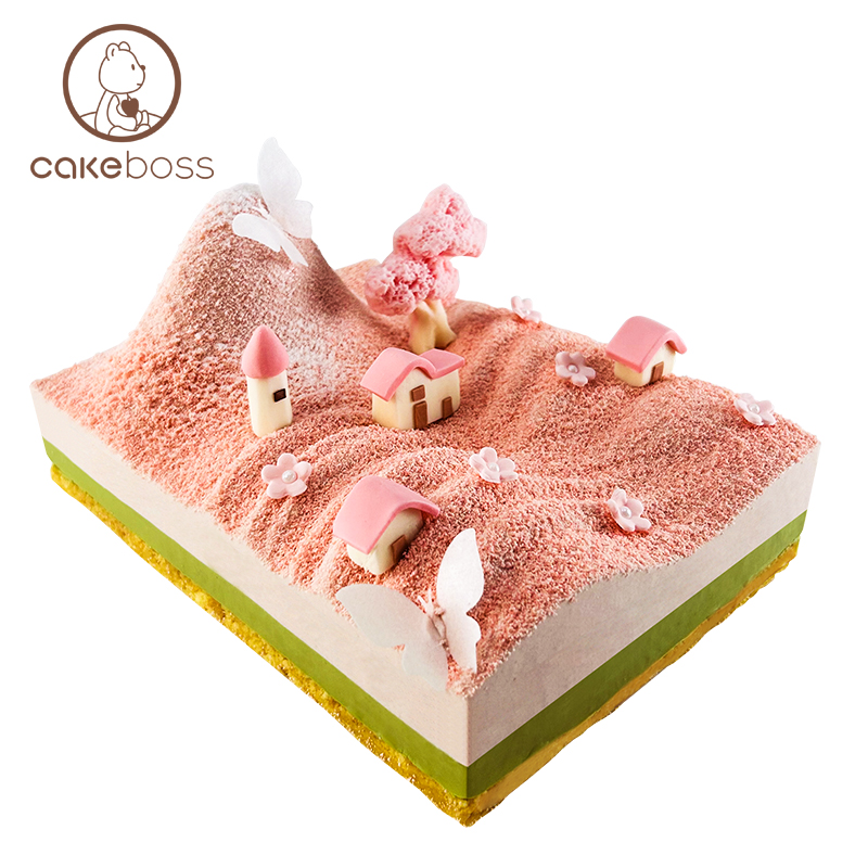 樱花微景观「花渡春」草莓抹茶慕斯蛋糕