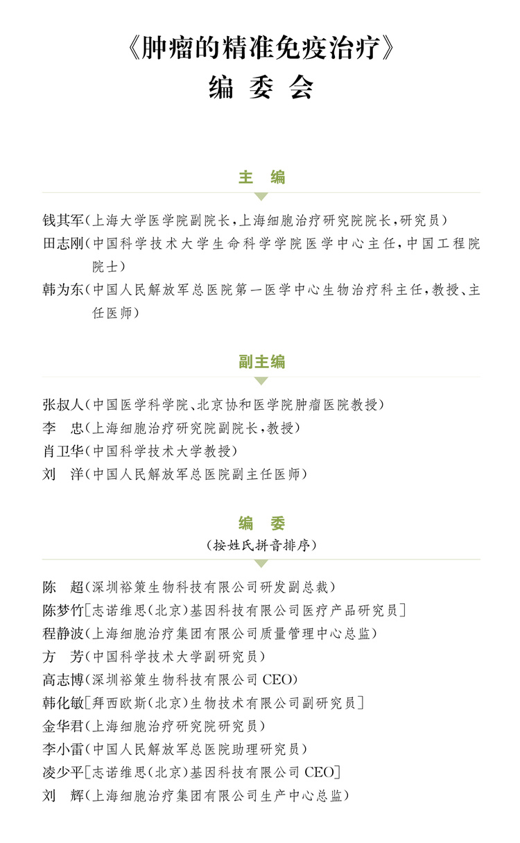 肿瘤的精准免疫治疗 9787313226310 钱其军 田志刚 韩为东 精准医学出版工程