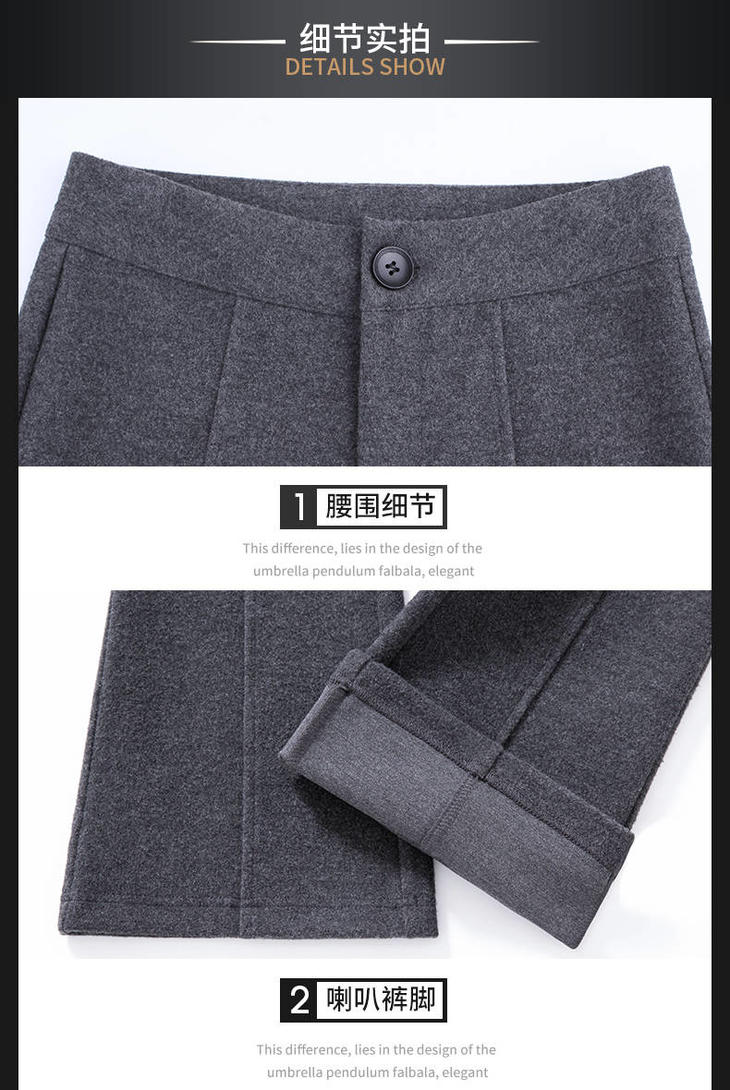 PDD-坠感毛呢微喇秋冬高腰显瘦阔腿长裤垂感喇叭裤女直筒休闲裤子