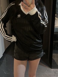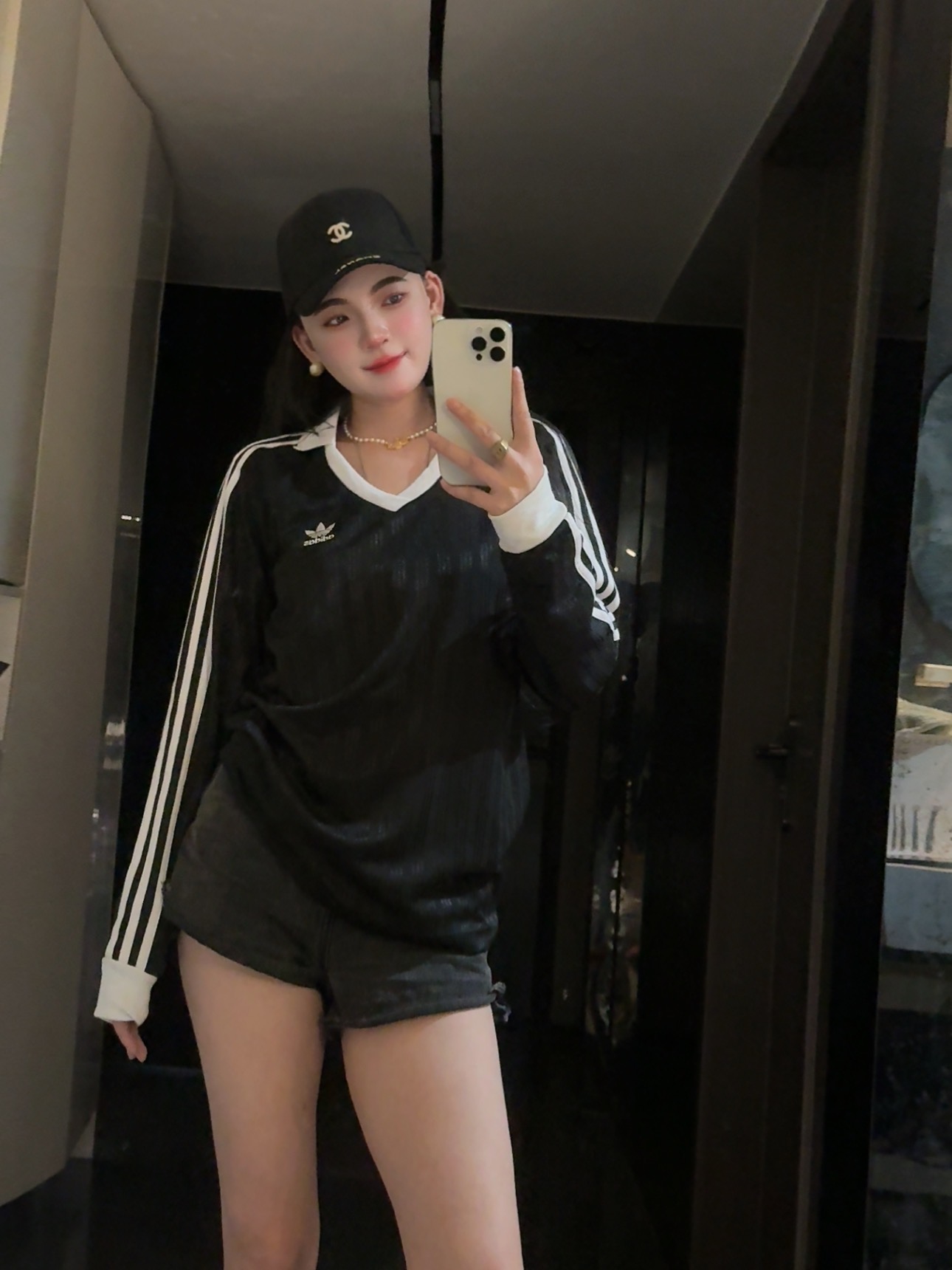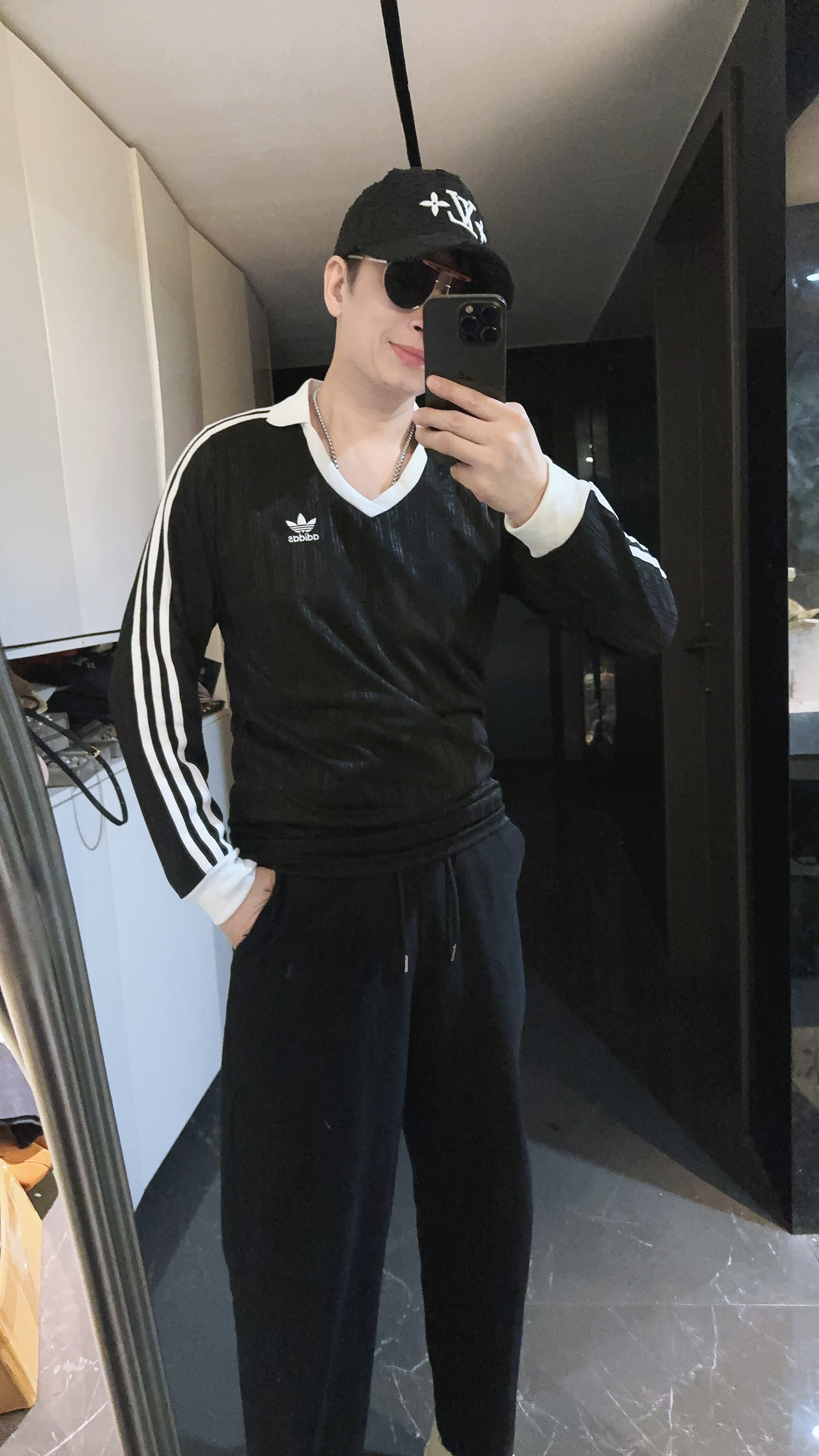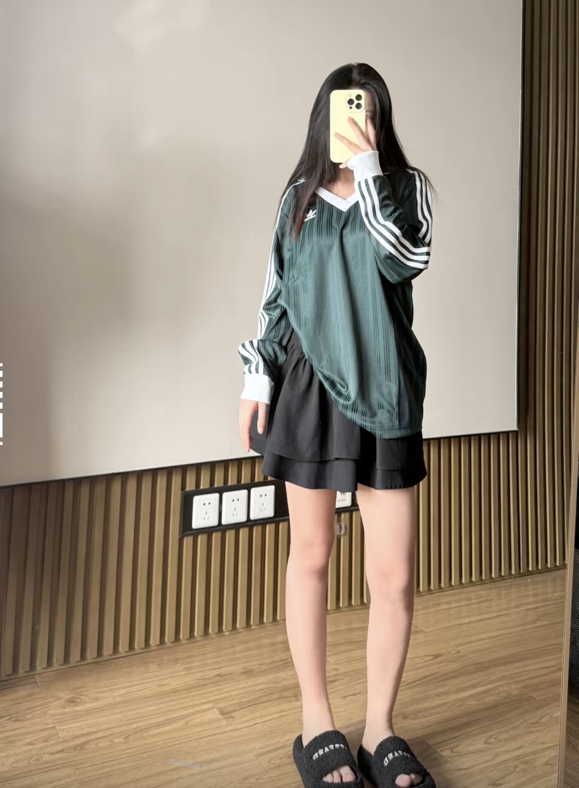 三叶草V领长袖🏈这款三叶草V领长袖,黑色主色调+三条杠,复古运动风满满!冰丝面料超透气,初秋穿刚刚好心宽松版型+翻领V领,修饰颈部线条,休闲又时髦计。日常通勤、运动都能轻松驾驭,搭配短裙或牛仔裤都很出彩!